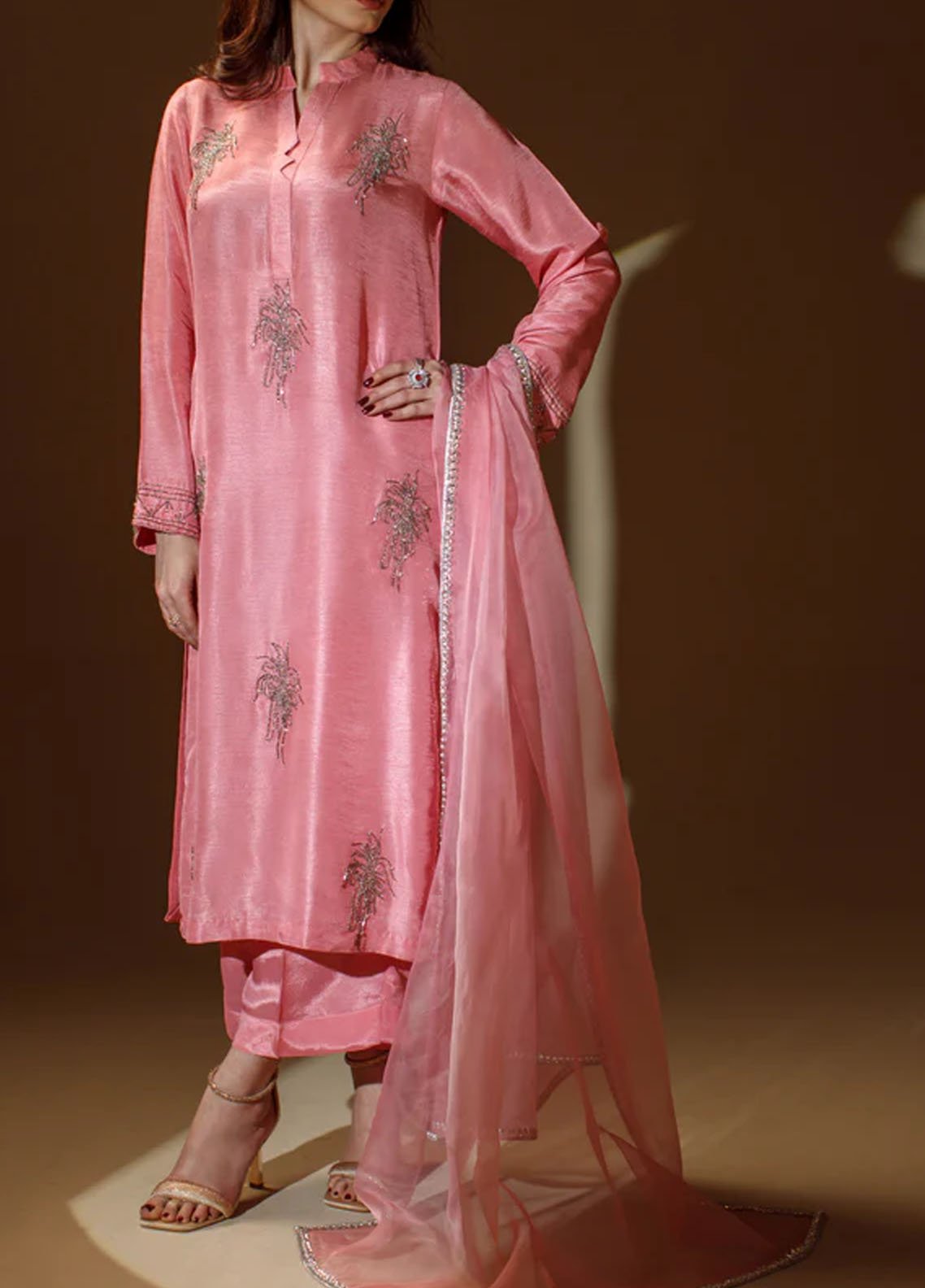 Embroidered Pret Korean Raw Silk 3 Piece