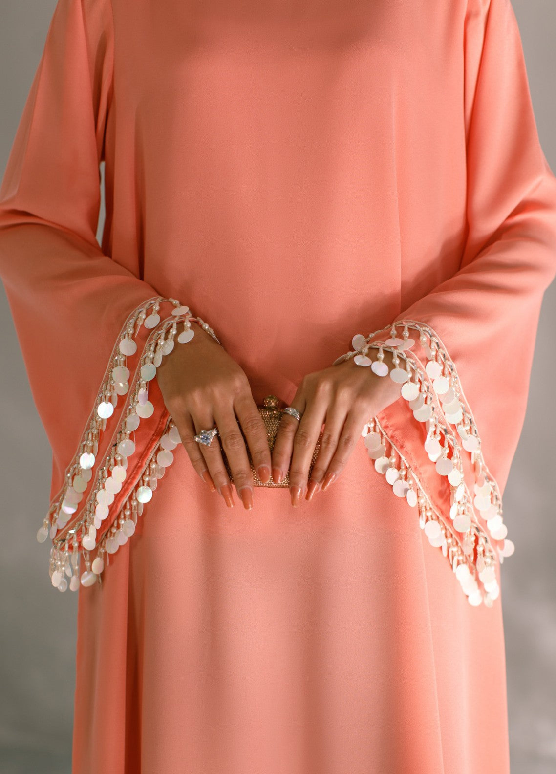 Elevate your festive wardrobe with this elegant pink georgette kaftan featuring a long airline silhouette and graceful bell sleeves. Crafted from lightweight, flowy georgette fabric, the kaftan offers comfort and a flattering drape for all-day wear. It comes with a separate sleek dupatta, adding versatility and a polished finish to the ensemble.