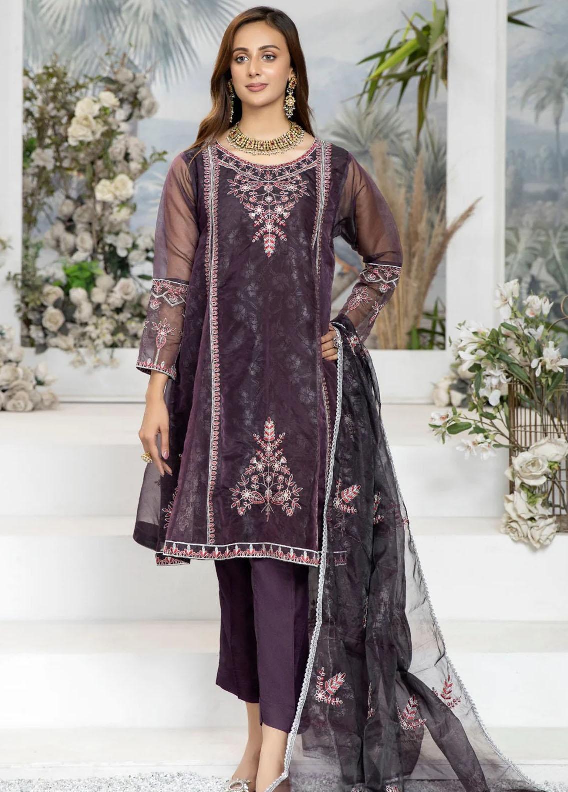2 Piece Embroidered Organza Suit