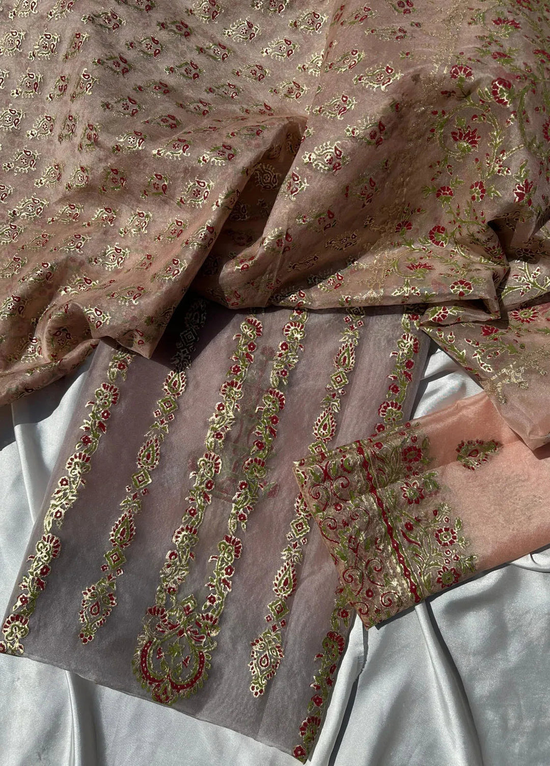 Organza unstitched dresses are admired for their rich texture and graceful structure, making them a perfect choice for festive and formal wear. These designs offer versatility for those who enjoy styling statement outfits with a luxurious finish.