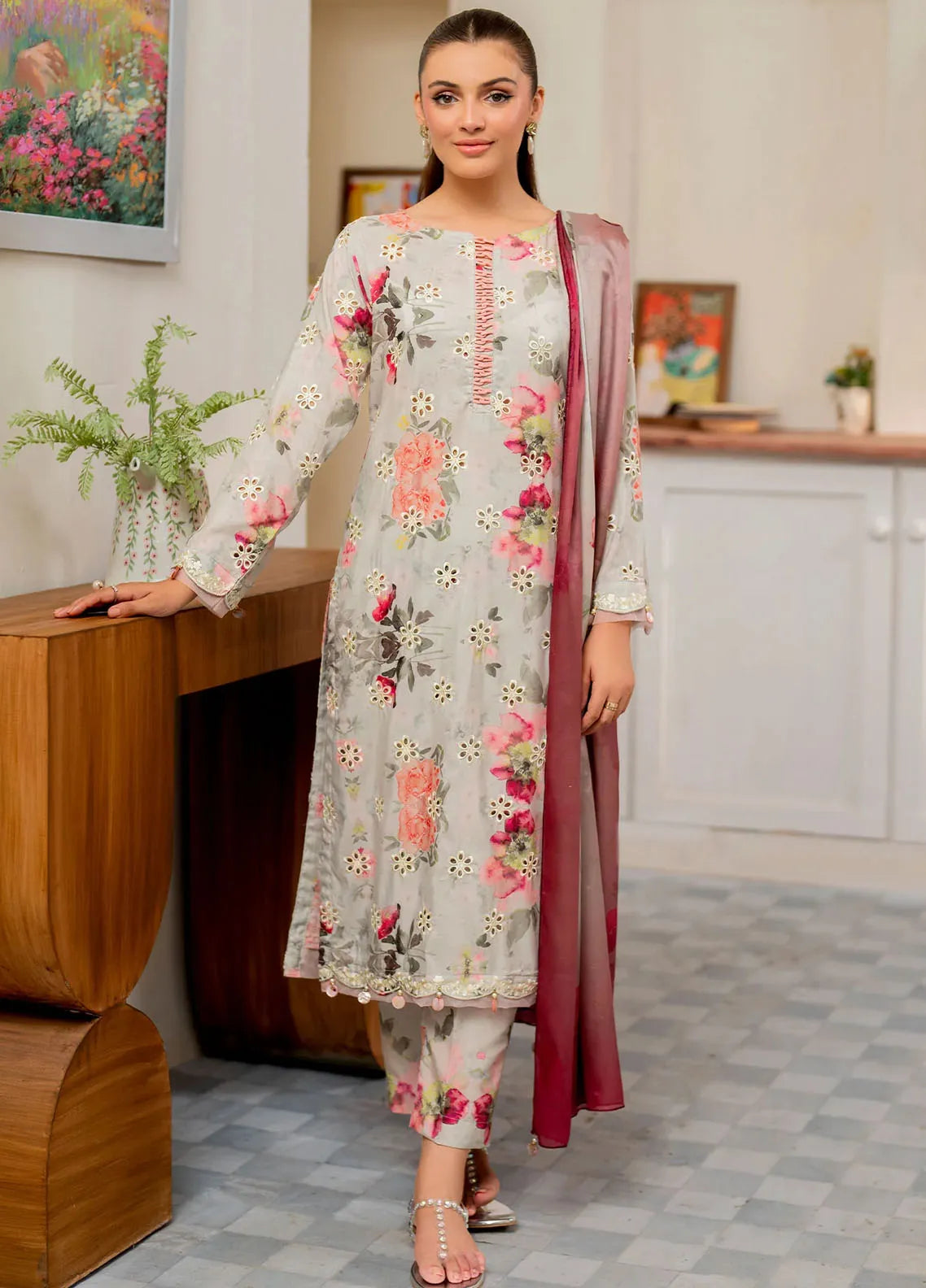 Embroidered Pret Cambric 3 Piece Suit