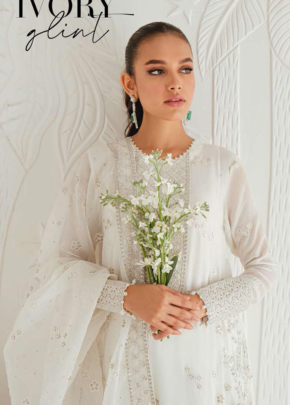 Luxe Atelier By Cross Stitch Embroidered Chiffon Suits Unstitched 4 Piece CS23LA 04 Ivory Glint - Luxury Collection