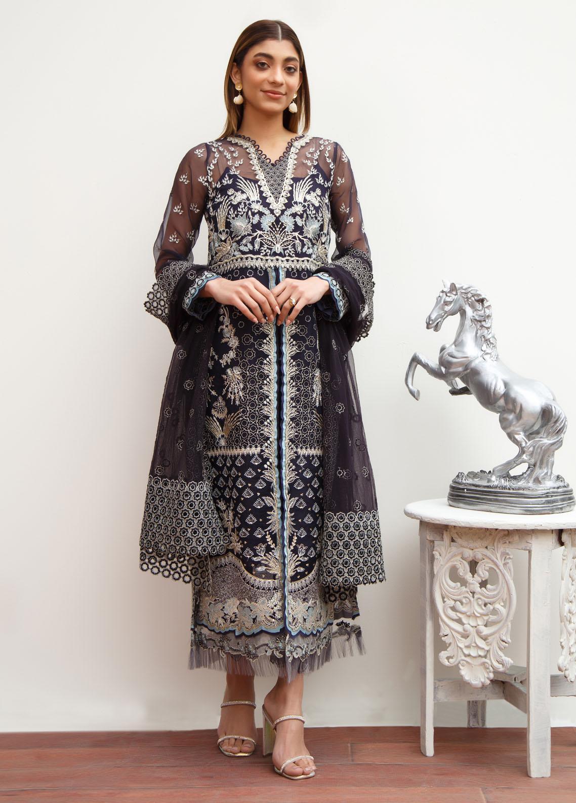 Suveez Luxury Pret Organza 3 Piece Suit SZ22MRP Daria Indigo (D-04)