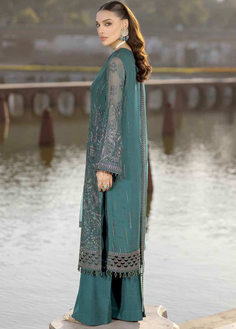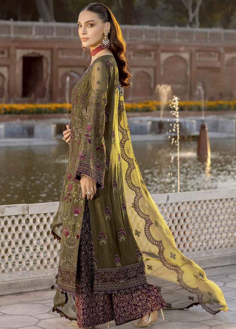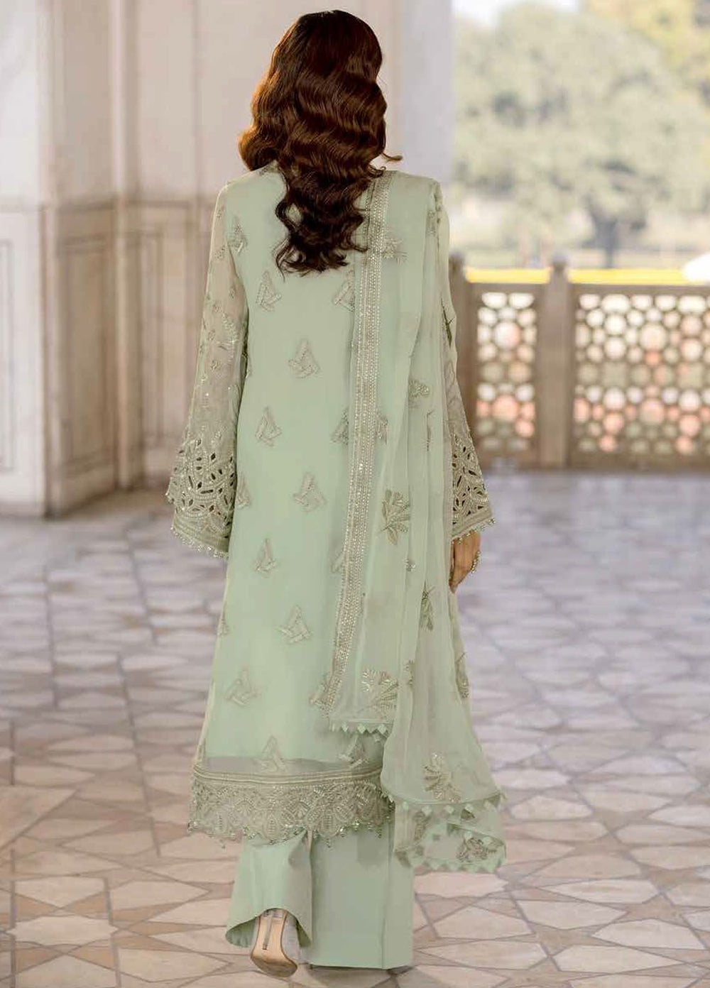 Safeera by Flossie Embroidered Chiffon Suits Unstitched 3 Piece FL24SF S-1304 Luster Green - Luxury Collection