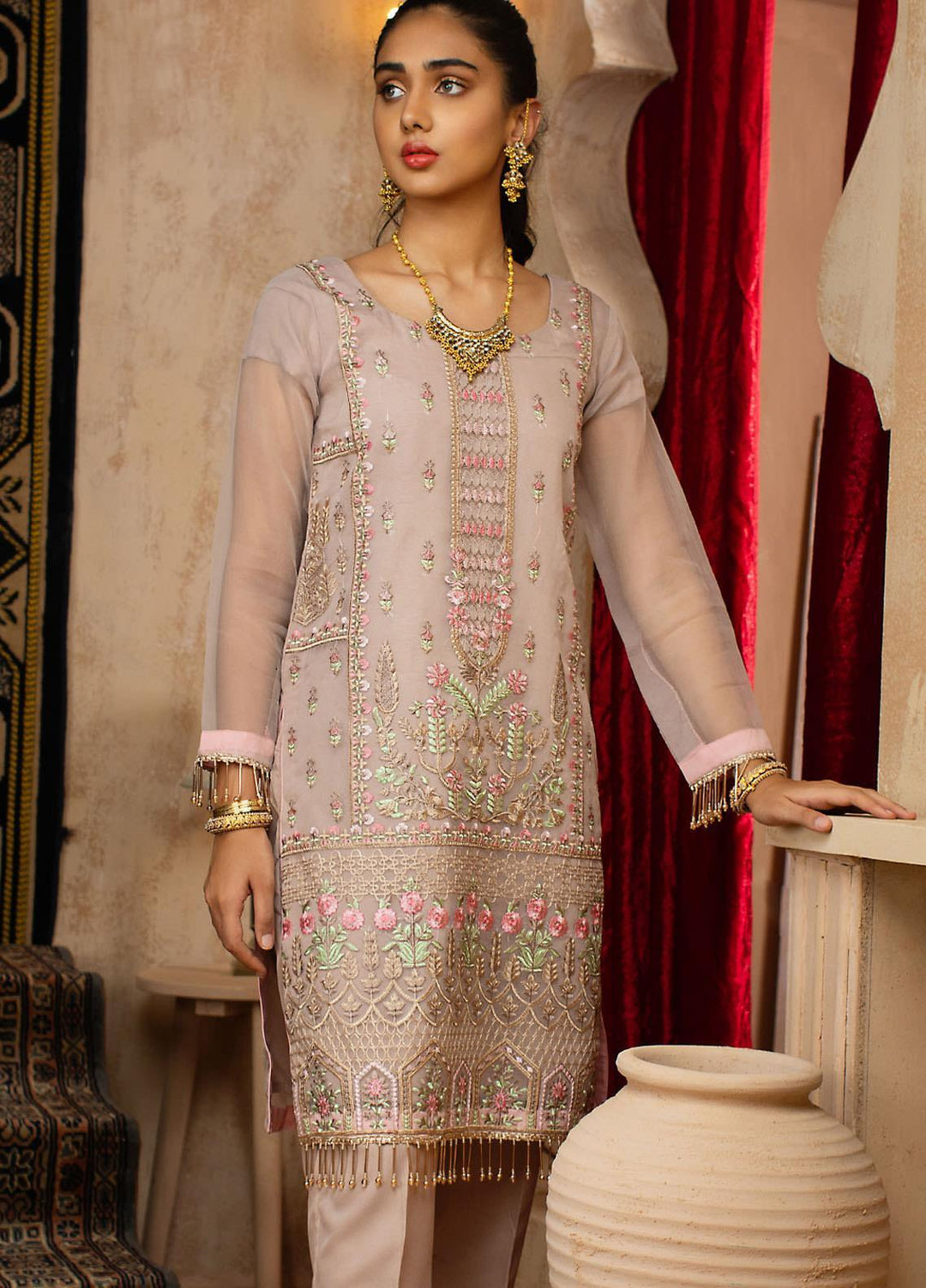 Zurr Haseen By AB Textiles Embroidered Organza Suits Unstitched 3 Piece AB21ZH 03 Rose Quartz - Luxury Collection