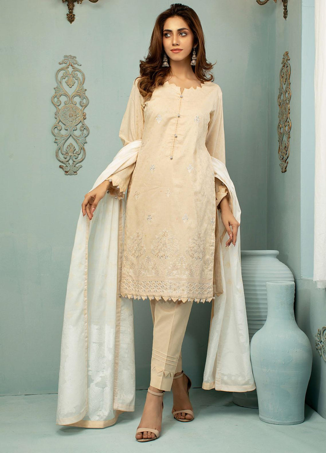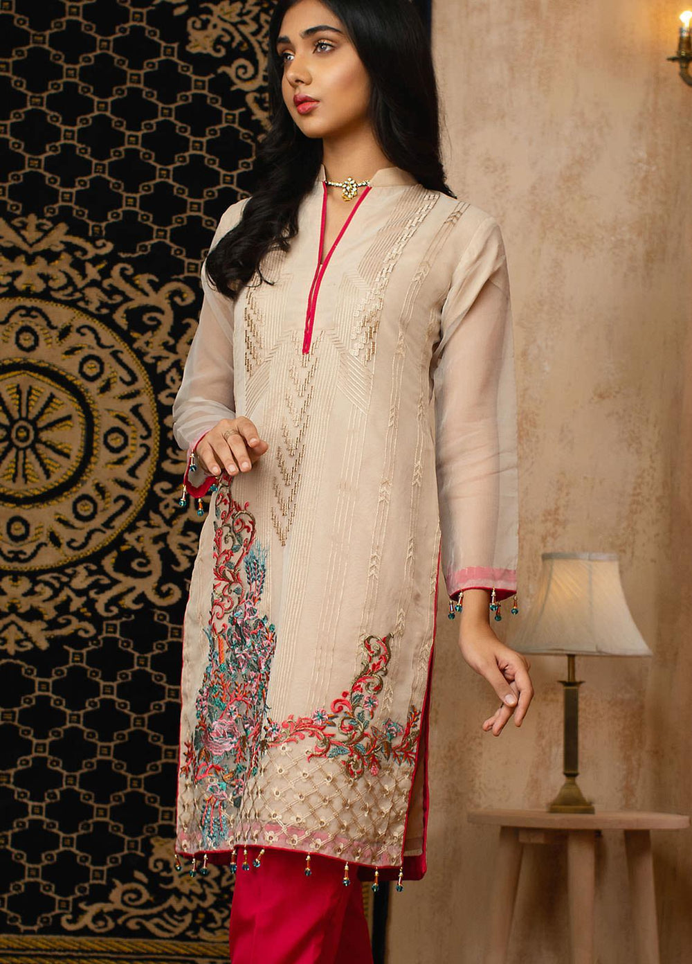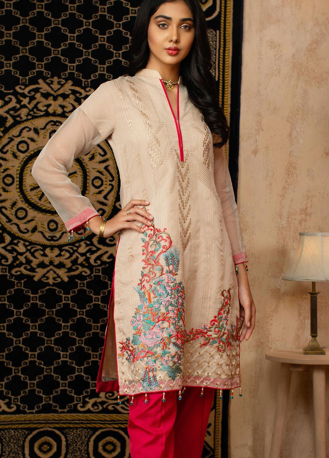Vital Soiree By AB Textiles Embroidered Organza Unstitched Kurties AB21VS VWE-05 BEIGE - Festive Collection
