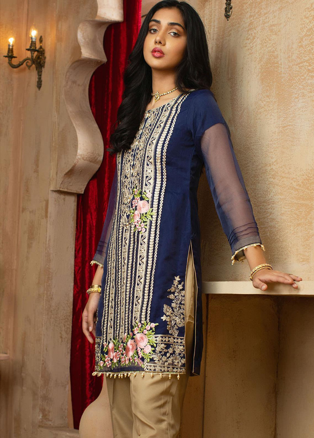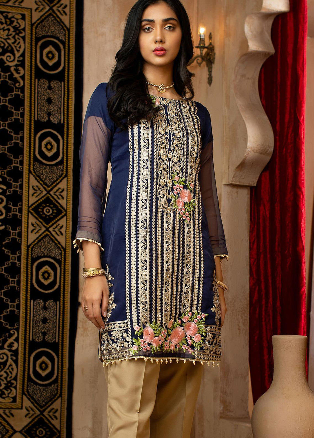 Vital Soiree By AB Textiles Embroidered Organza Unstitched Kurties AB21VS VWE-09 BLEUE - Festive Collection