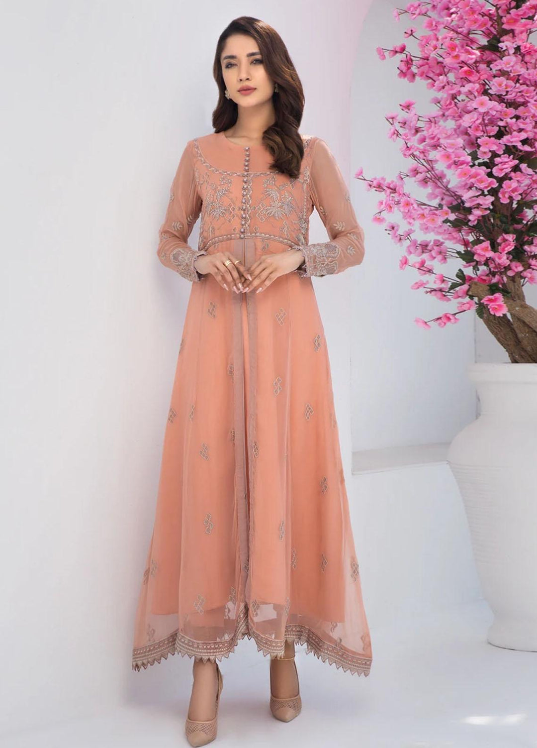 Mushq Embroidered Organza Stitched Kurti PEACH PEONY