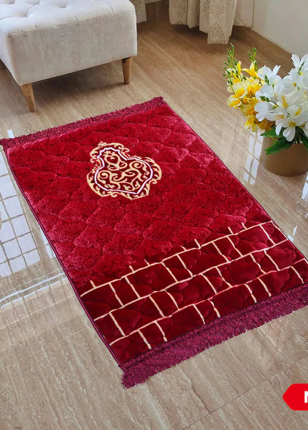 Plush Mink Mughal Janamaz Printed Prayer Mat- Qibla Maroon