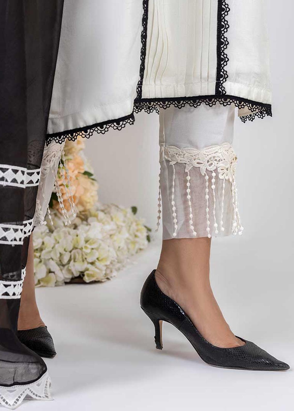 A stunning pearl white raw silk shirt featuring an intricate pattern. The shirt boasts an enchanting design that is both feminine & sophisticated. The silky-smooth fabric drapes gracefully on the body providing an airy & comfortable fit. It is paired with a raw silk straight pants with a beautiful applique detail. Adding a striking pop of color to the outfit is a contrast dupatta made from soft organza fabric with all over lace detail. The dupatta complements the shirt perfectly, creating a pleasant balance of color & texture. Model is wearing size small & is 5.9 Inches tall.