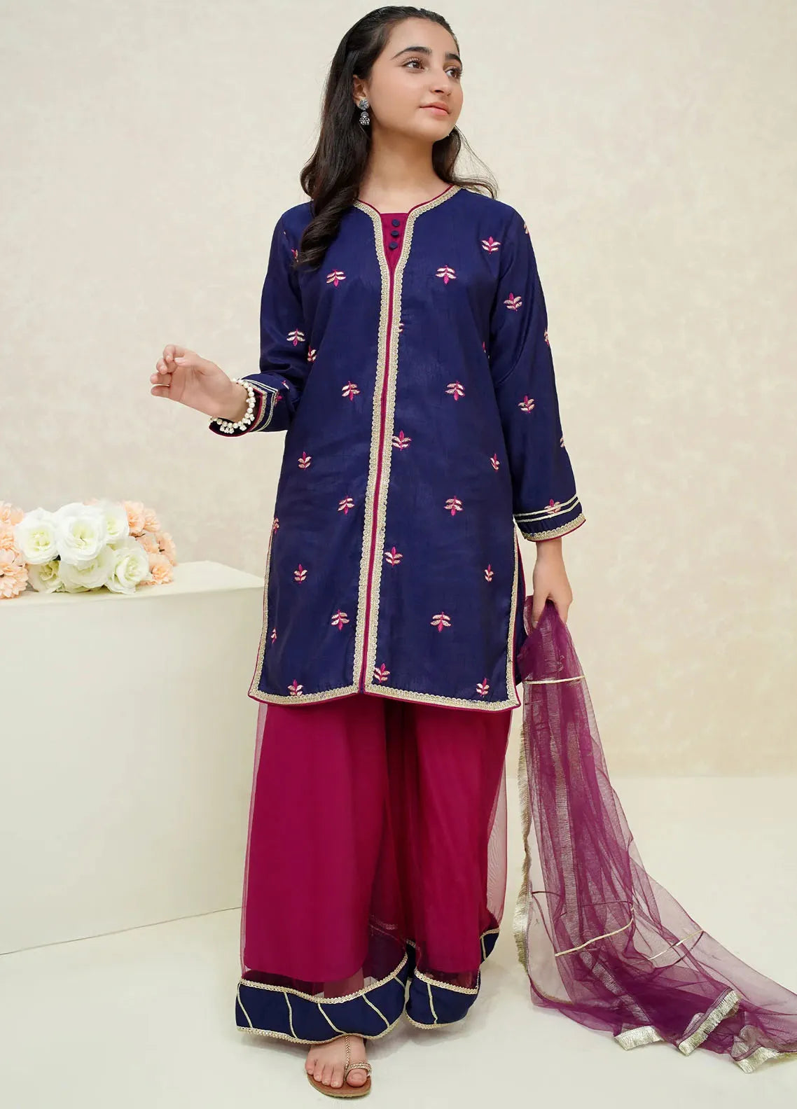 Embroidered Pret Raw Silk 3 Piece Suit