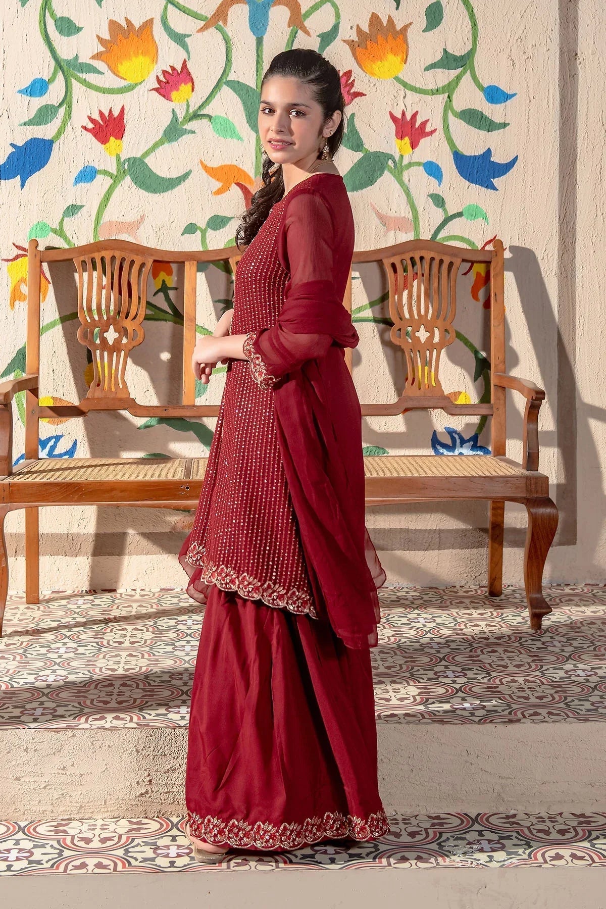 Dupatta: Maroon Chiffon Dupatta"