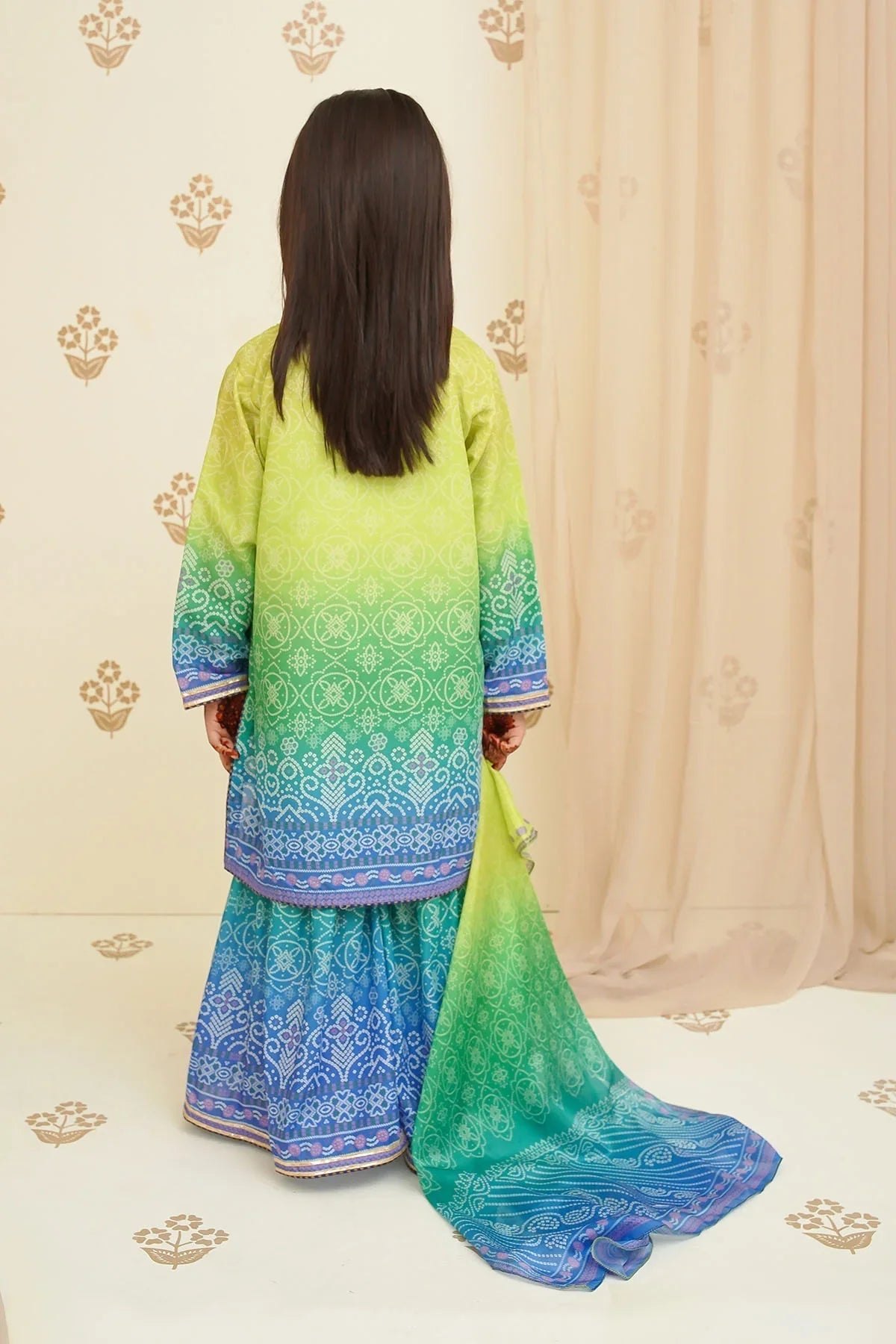 Bottom: Lime Green three tone Chunri Swiss Lawn Digital Printed Gharara Pant s