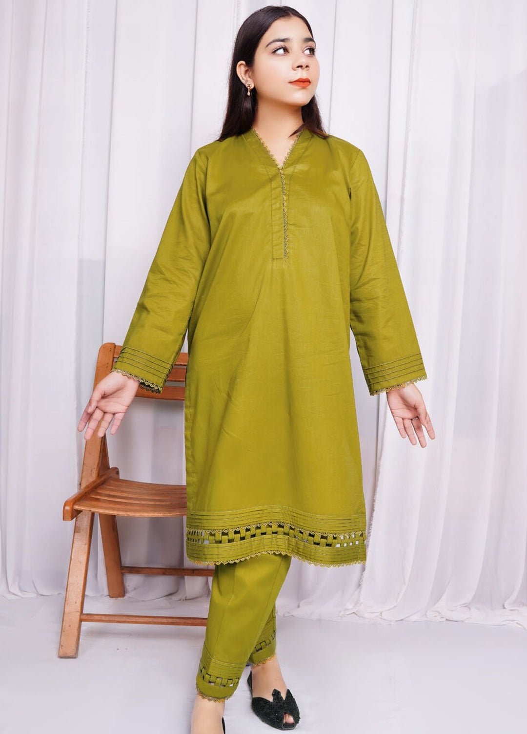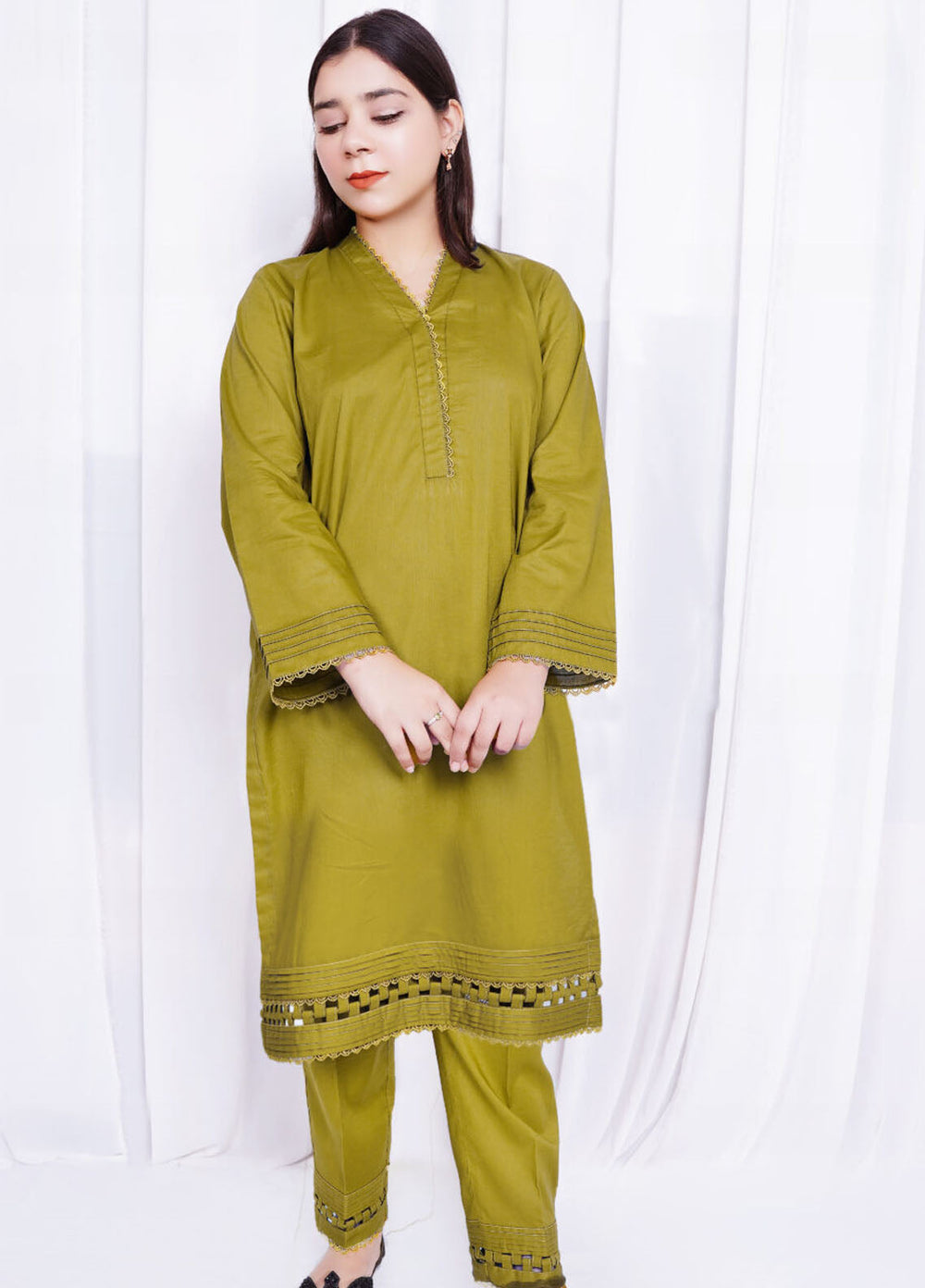 Pret Bee Women Cotton Embroidered Suits 3 Piece Olive Green - Winter Collection