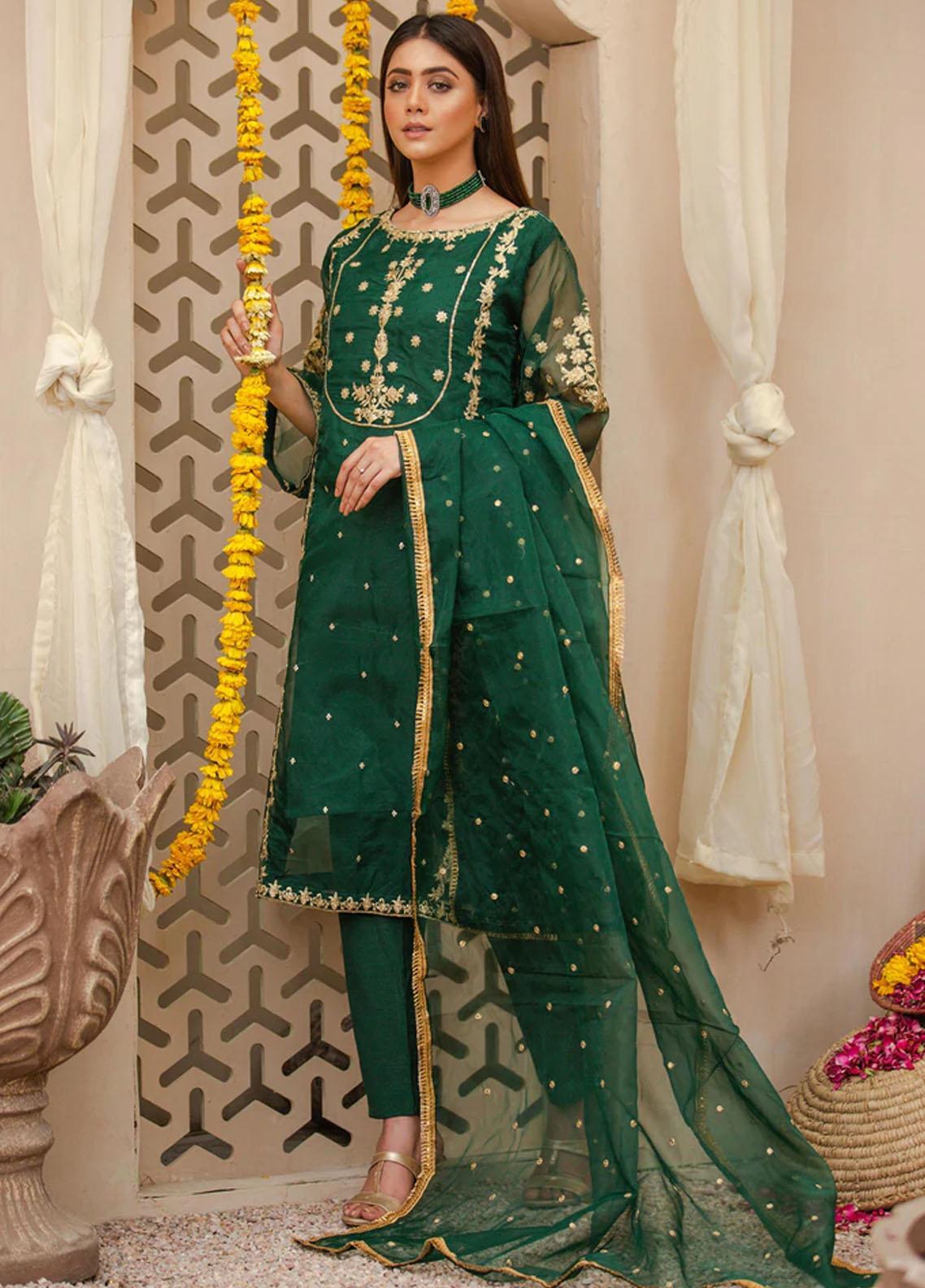 Agha Jaan Luxury Pret Organza 3 Piece RO-7 Bottle Green