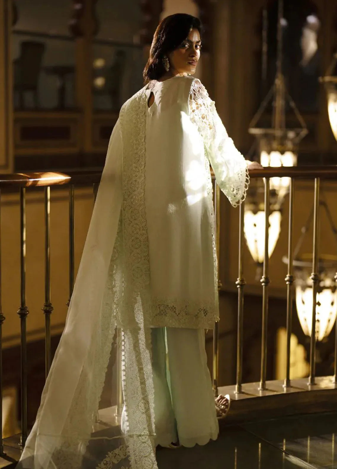 • Introducing Lime A Chic Blend Of Elegance And Sophistication. This Organza Shirt Features Intricate Cutwork Embroidery And A Beautifully Embellished Neckline With Pleated Sleeve Details And A Cutwork Border Adorned With Motifs. Paired With Scalloped Front Open Loose Pants And A Delicately Embroidered Organza Dupatta This Ensemble Redefines Modern Luxury With Timeless Charm.