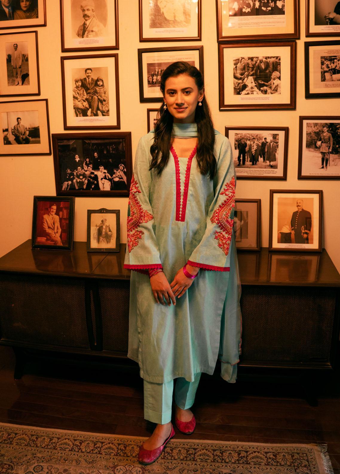 Stitched:Straight Cut Kurta With Embroidered Sleeves And Lace On Neckline. Staight Trouser. Dyed Dupatta.(Shirt Length 42 Inches)
