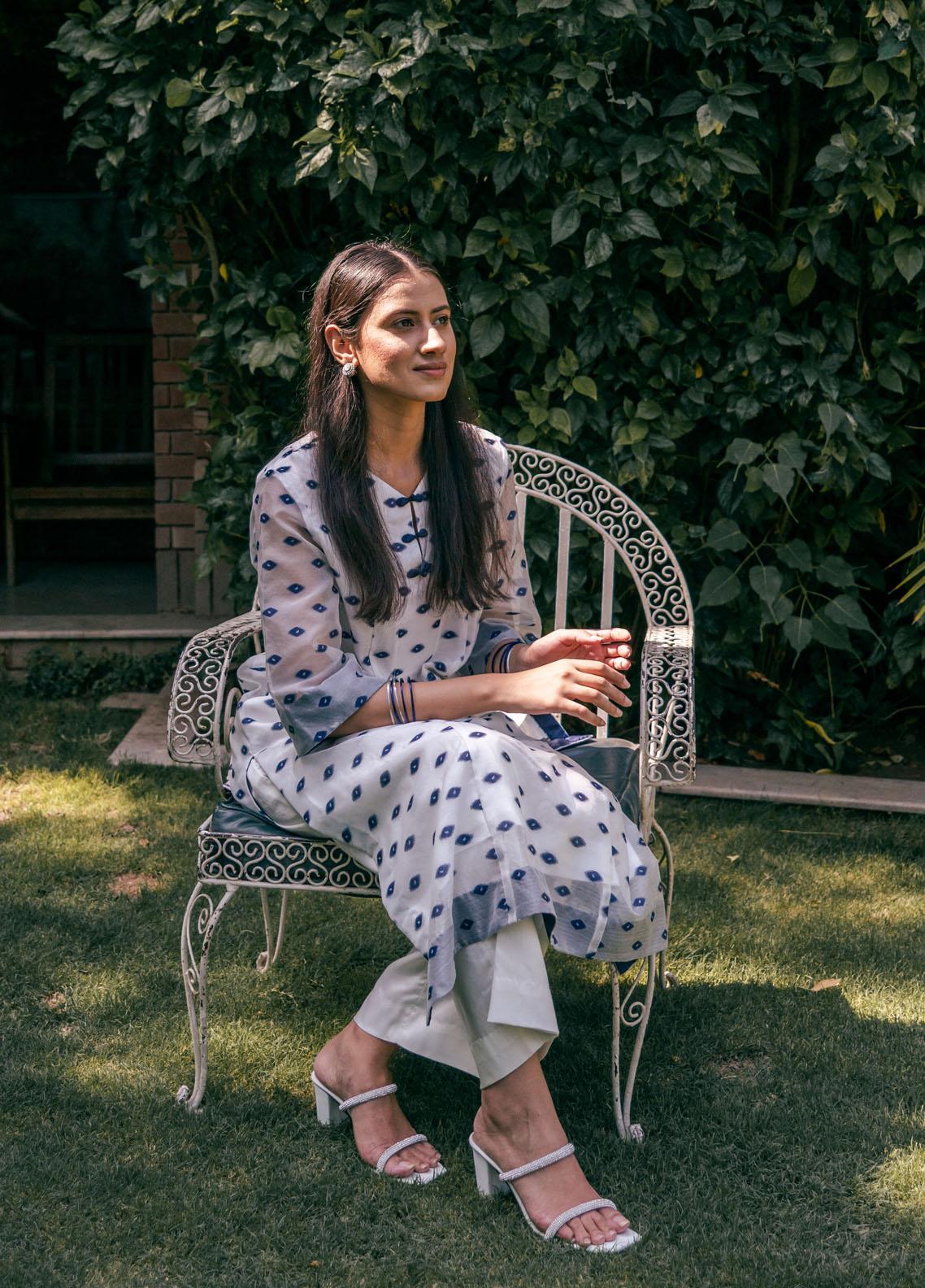 Stitched:Princess Panels Flared Kurta With Lining. Flared Trouser.(Shirt Length 44 Inches)