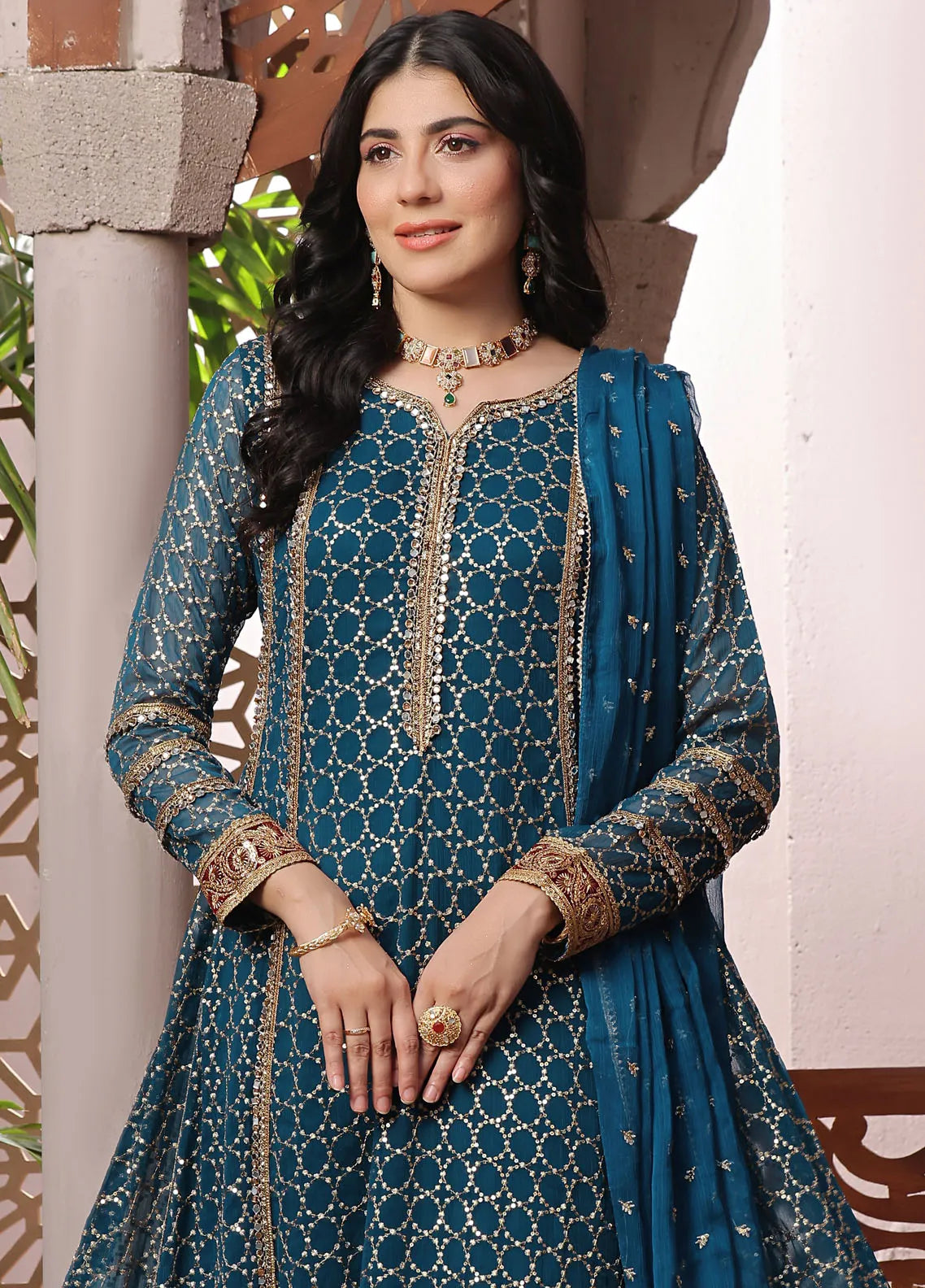 Ayesha Closet Pret Embroidered Chiffon 3 Piece Suit Shahzadi Teal Blue