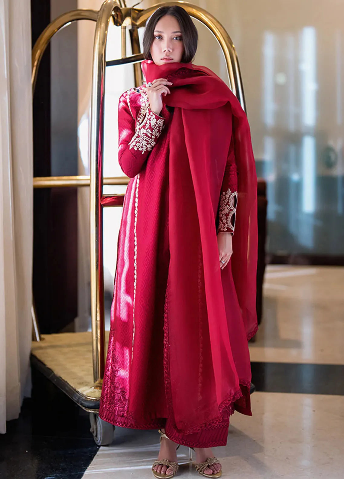 Azure Pret Embellished Sheesh Silk 3 Piece Suit Wine Reverie