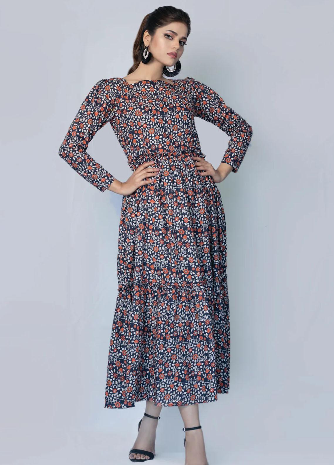 Ethnic Floral Rush In Cotton with 4 yards of flow, making your twirl dream come true. Soft and comfortable to the touch, while the intricate floral design adds a touch of sophistication and charm
