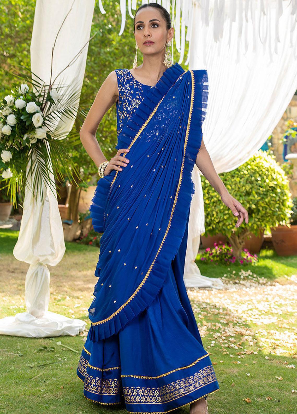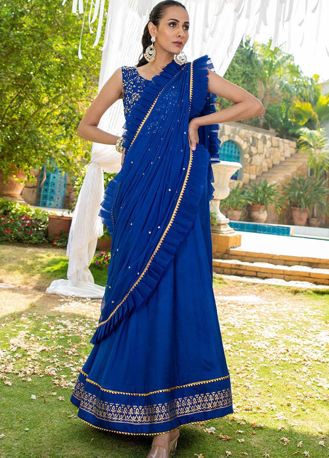 Gorgeous Hues And Embellishments, This Royal Blue Kalidar Is A Style Statement For The Coming Festive Season. Can Be Paired With Sequins Embellished Frilled Dupatta.