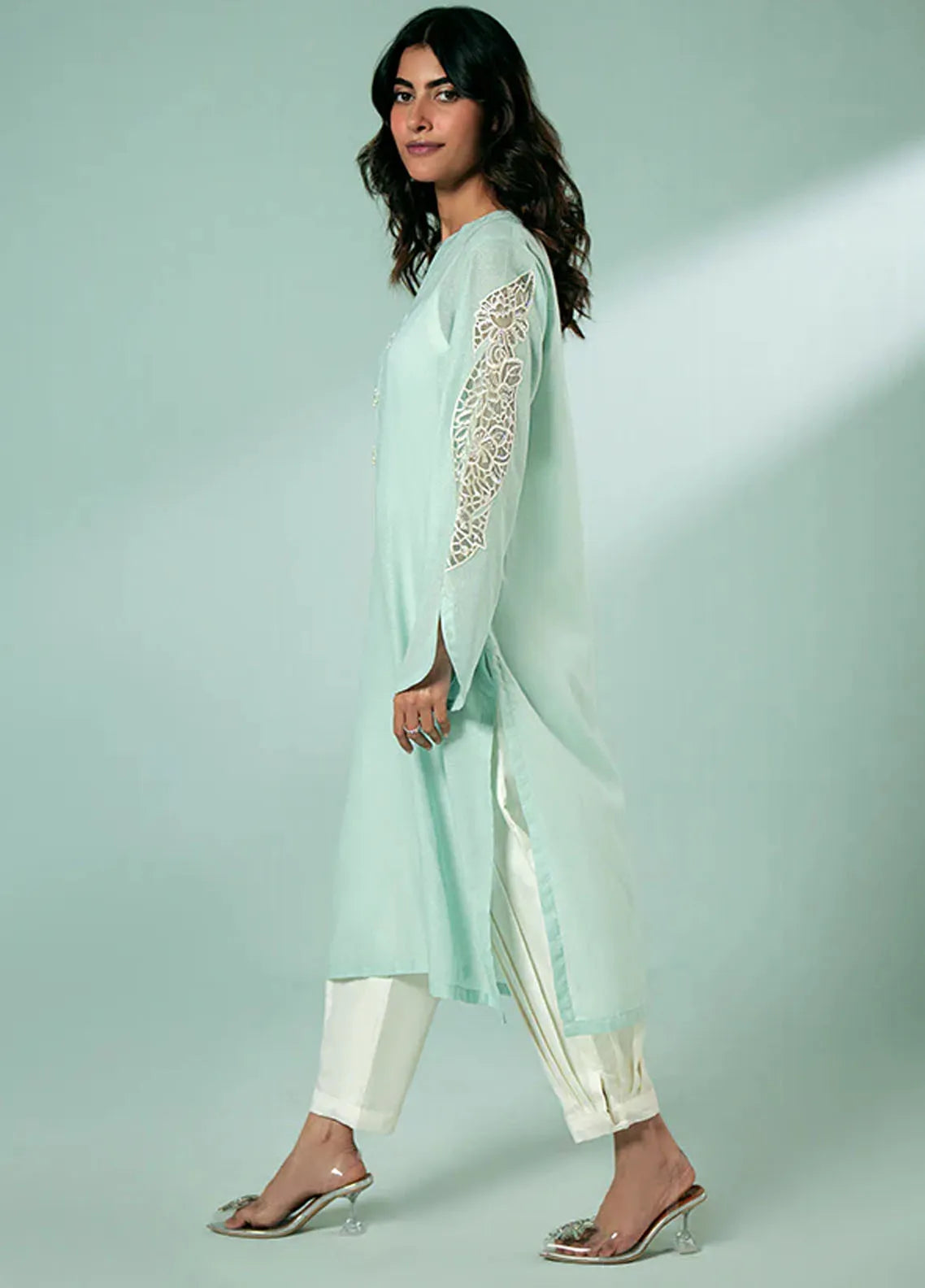 Fozia Khalid Pret Casual Karandi Kurti Sky Blue