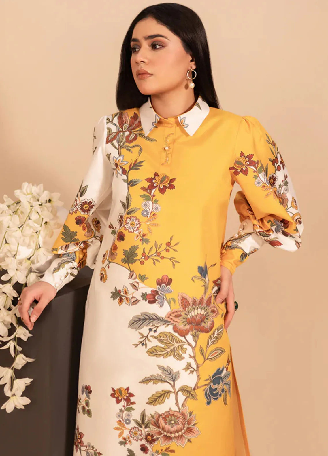 Fozia Khalid Pret Casual Khaadi Silk 2 Piece Suit Celestine