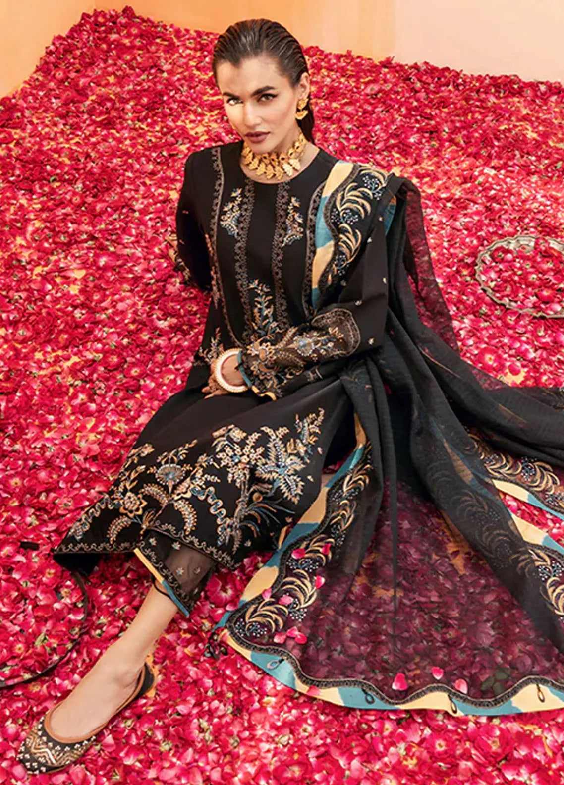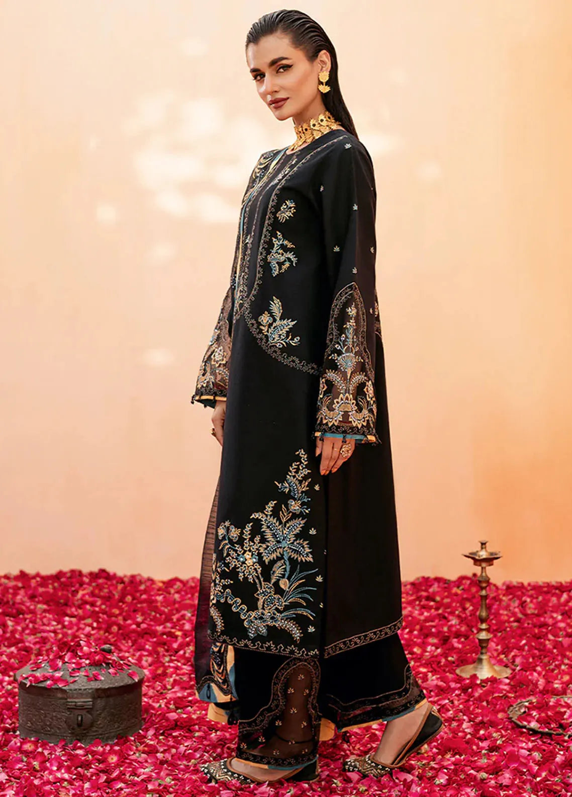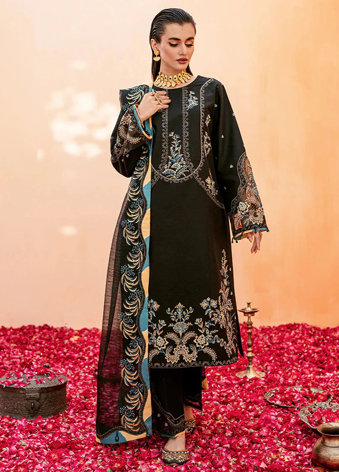 Fozia Khalid Pret Embroidered Cotton 3 Piece Suit Jade Black