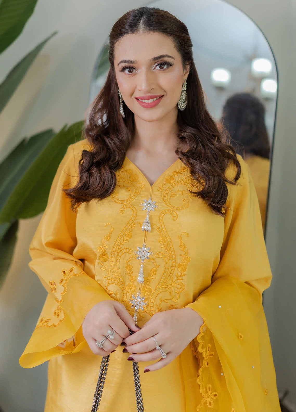 Fozia Khalid Pret Embroidered Silk 3 Piece Suit Saffron