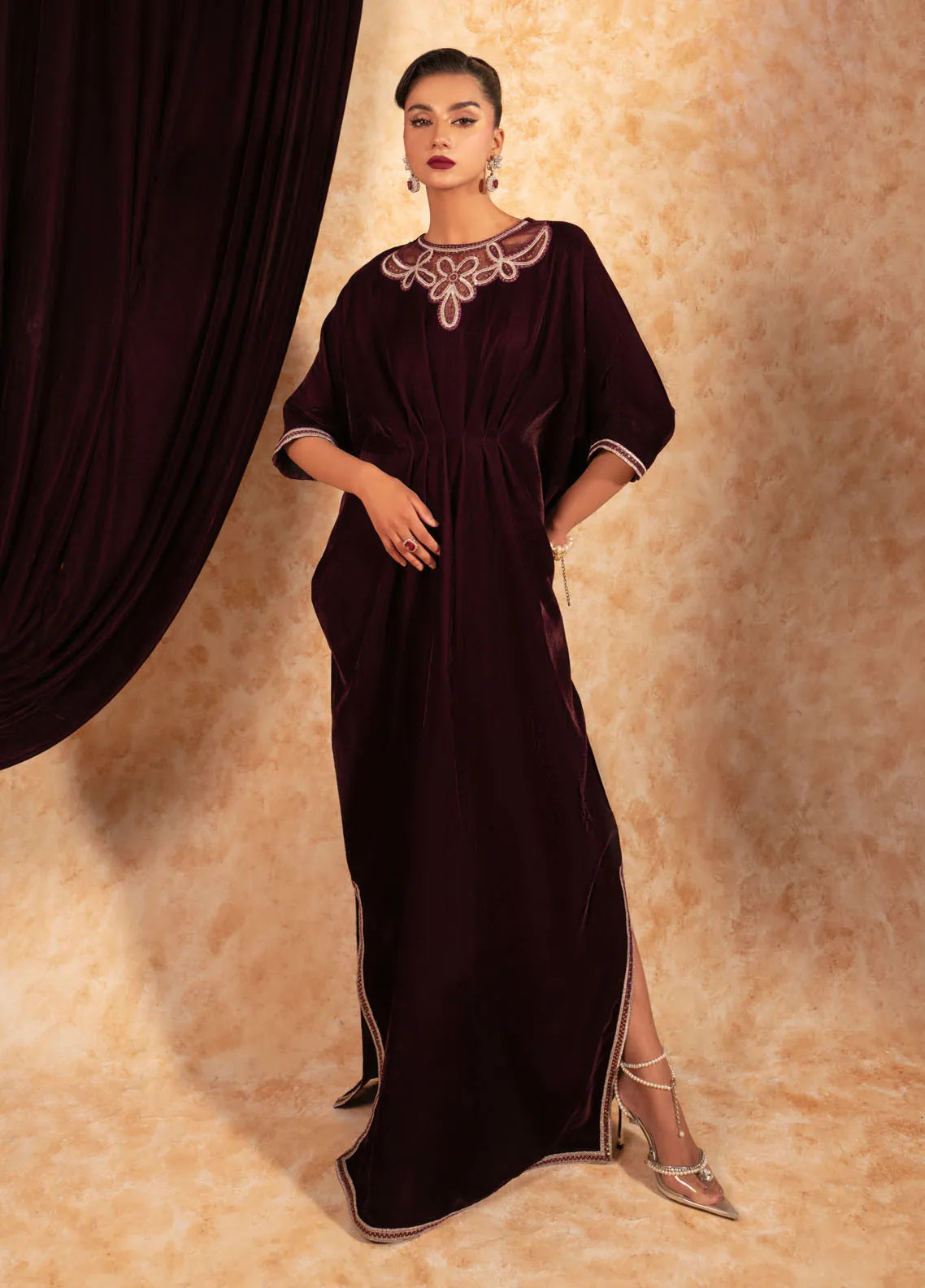 Fozia Khalid Pret Embroidered Velvet Kaftaan Ruby