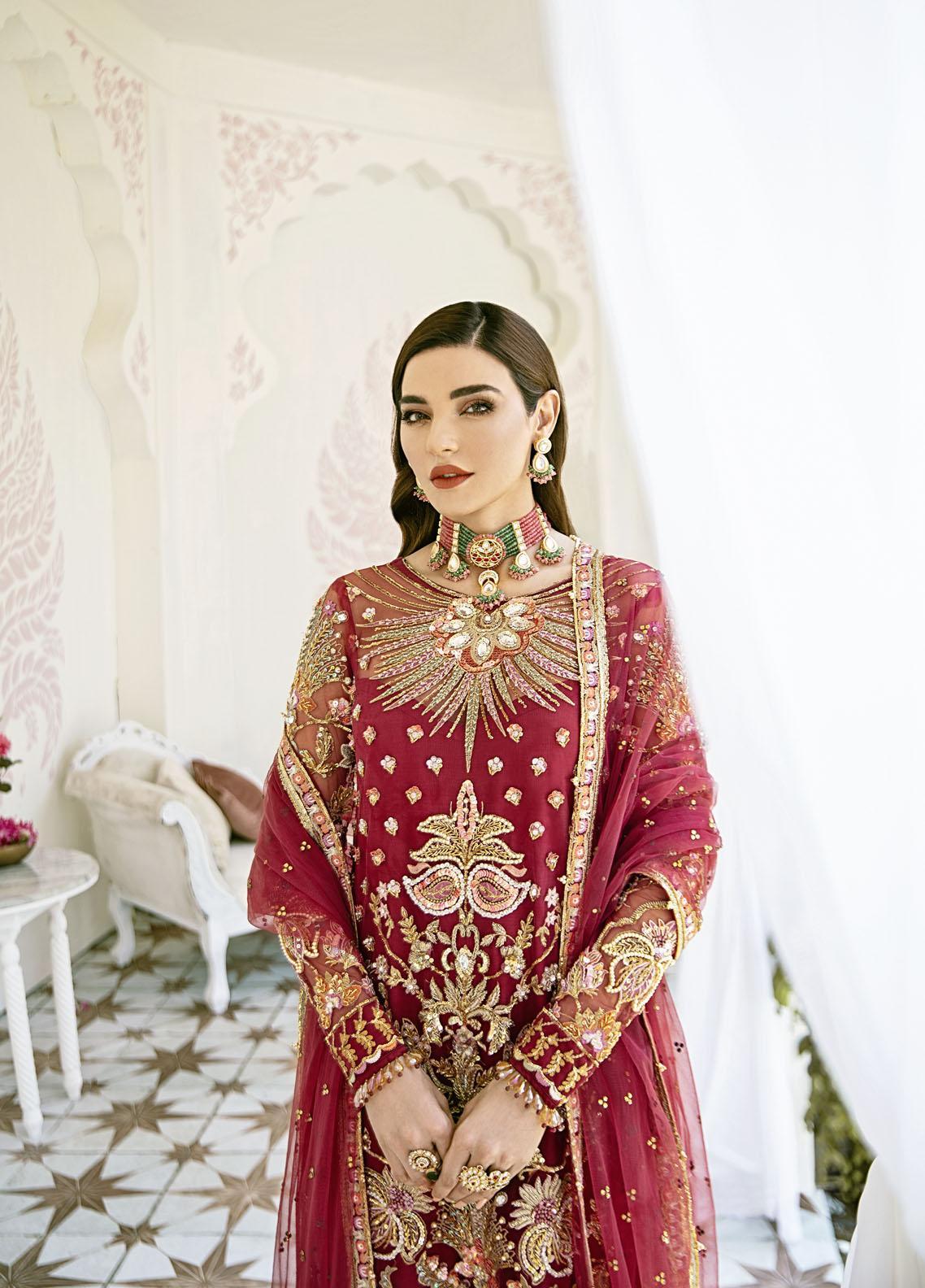 Gulaal Luxury Pret Embroidered Net 3 Piece Dress GL22FDR Rouge