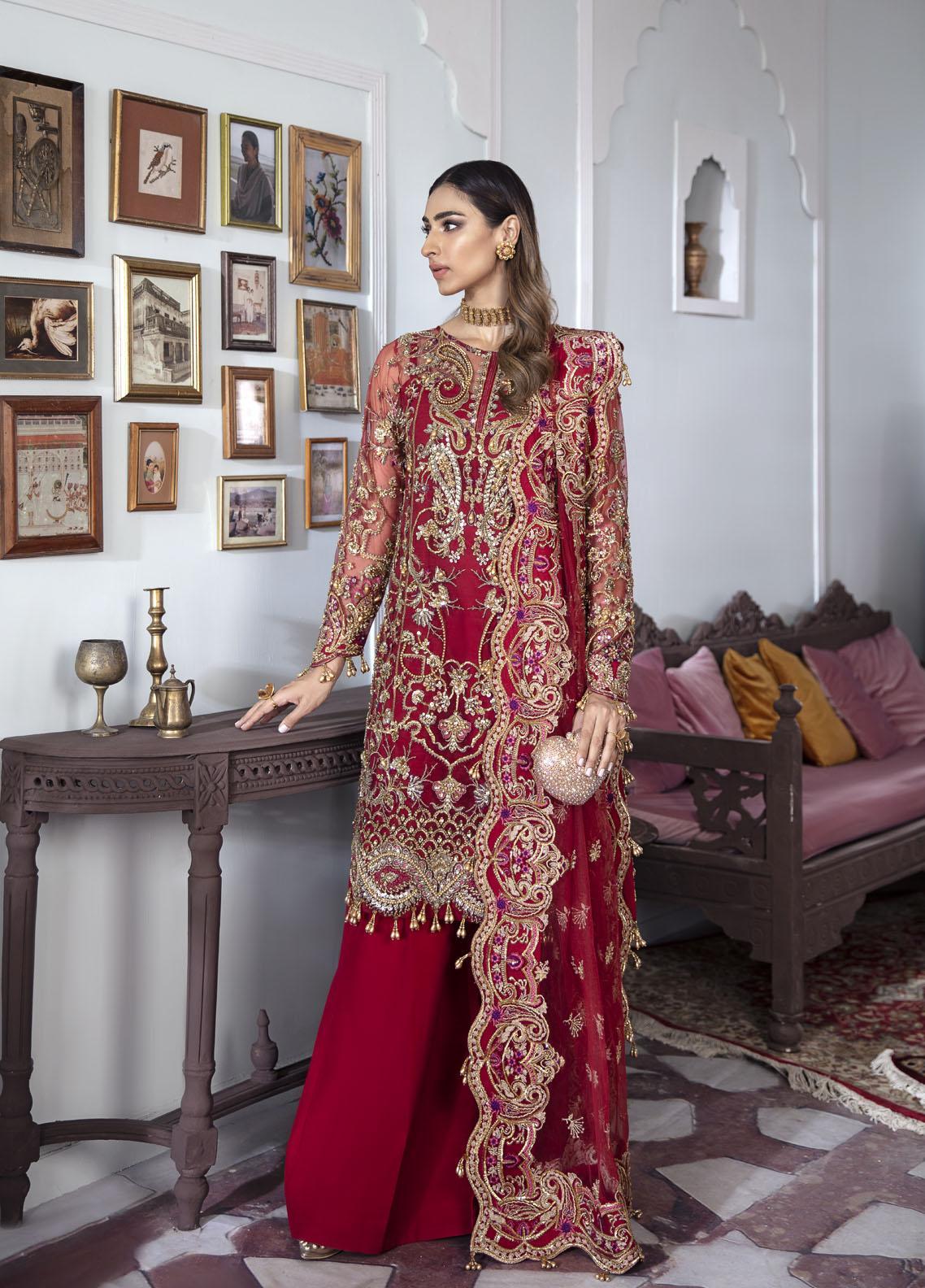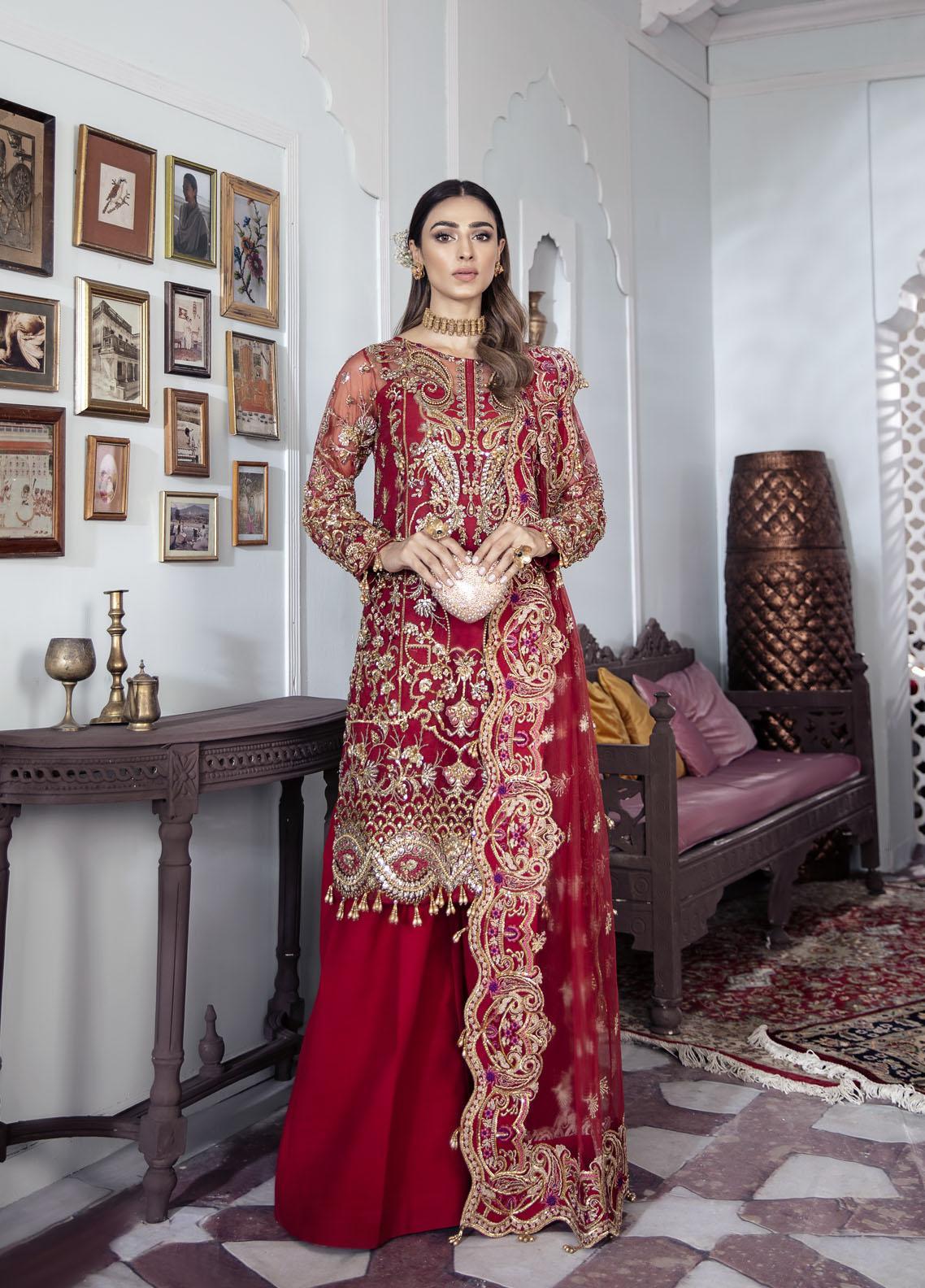 Gulaal Luxury Pret Embroidered Net 3 Piece Dress GL22MHR Tamanah
