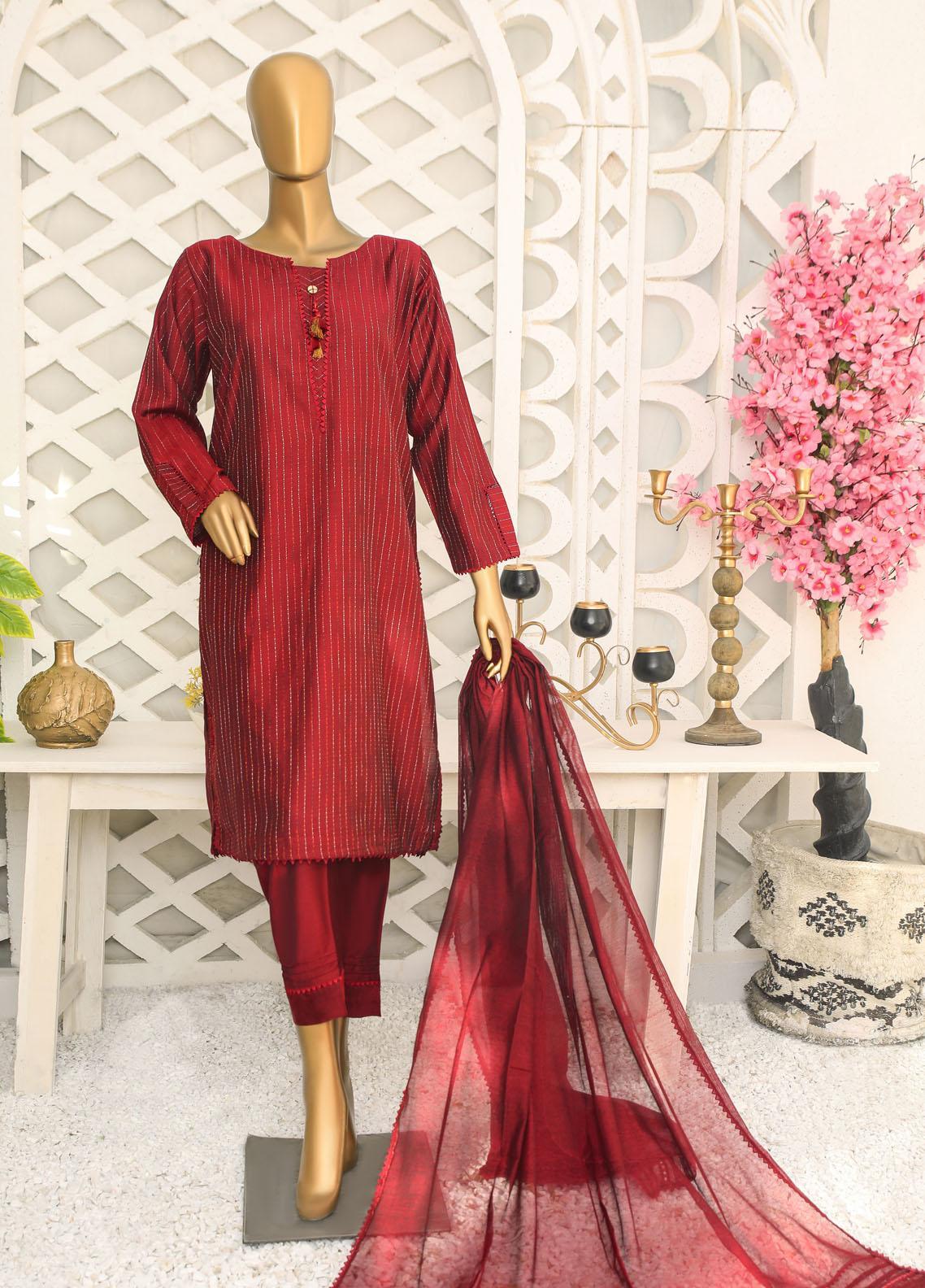 HZ Textiles Casual Pret  Yarn 3 Piece Suit 1B Maroon