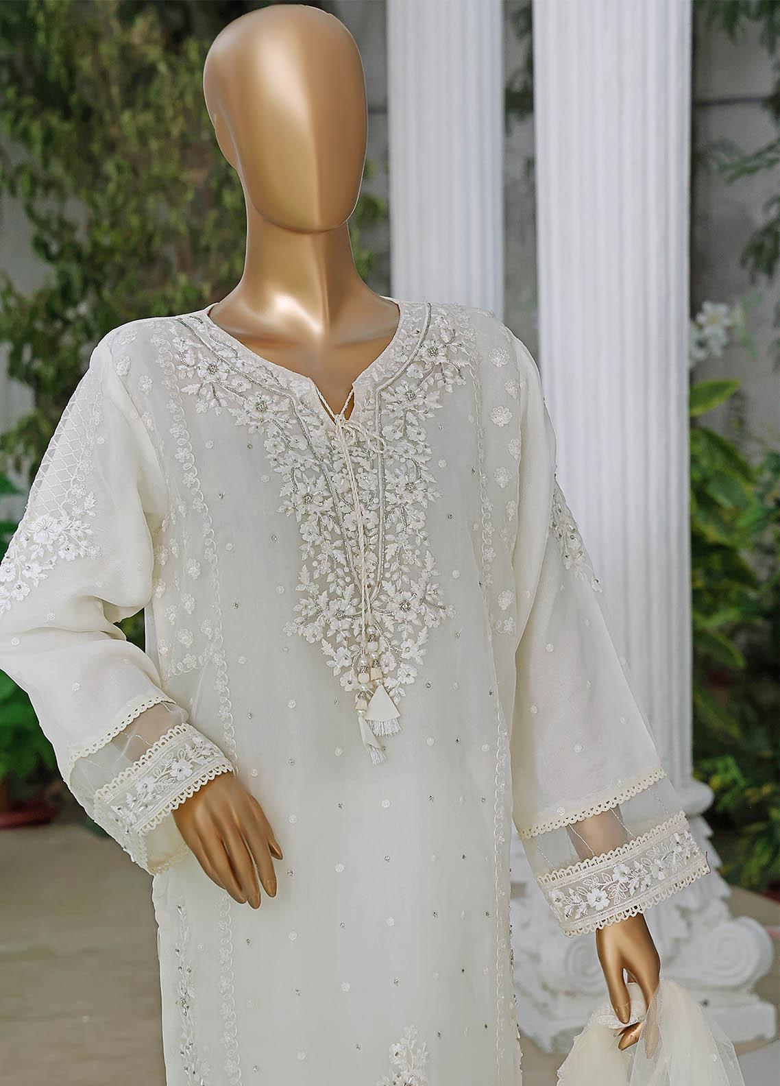 HZ Textiles Pret  Organza 2 Piece Suit HZK-054 WHITE
