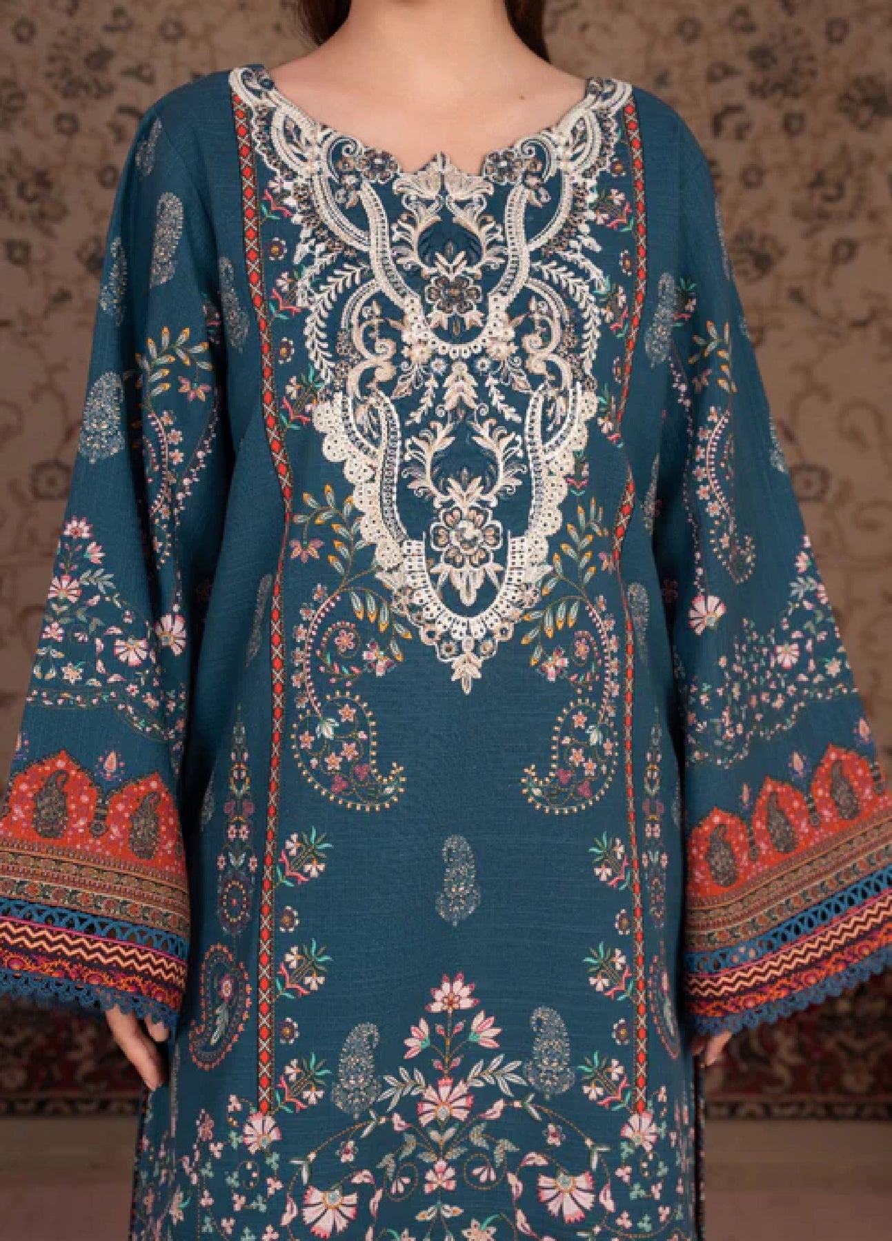 Additional Description: “Jagnu is the latest collection by Chandan Nagri, featuring intricate embroideries and rich, elegant prints. Paired with beautiful shawls, this collection is perfect for everyday looks with a touch of timeless style.” Dupatta accessories (tussles) are not included.
