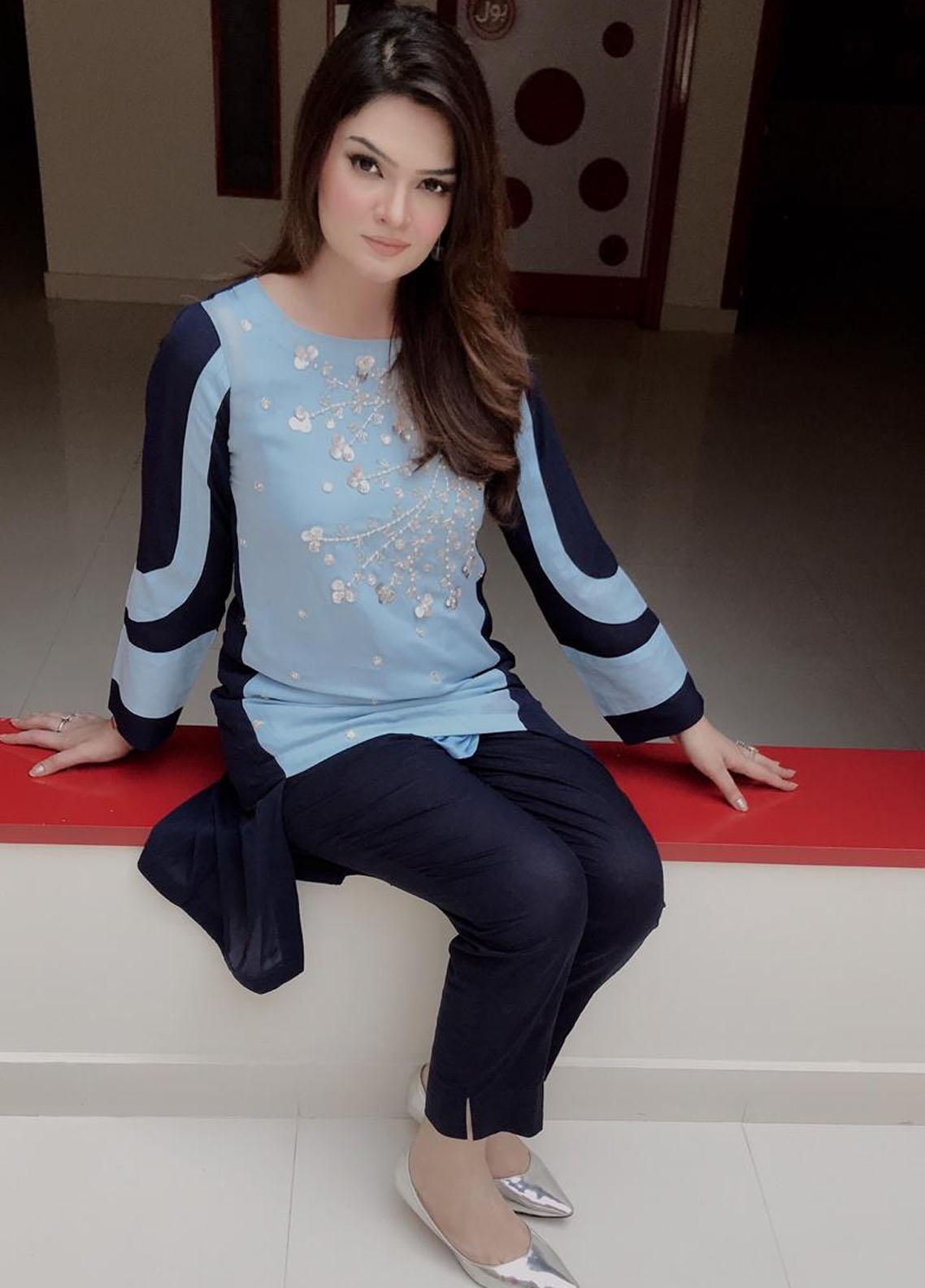 Beautifully Crafted Dual Color Shirt in Georgette Fabric with Embellishments on the front Sky Blue color.