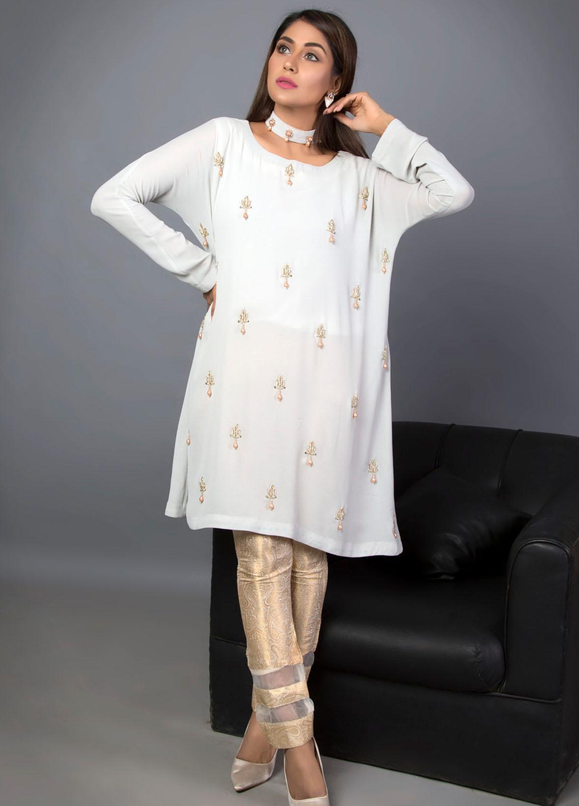 Beautiful Georgette fabric Shirt with Peach Embellishments and a Neck Lace as well