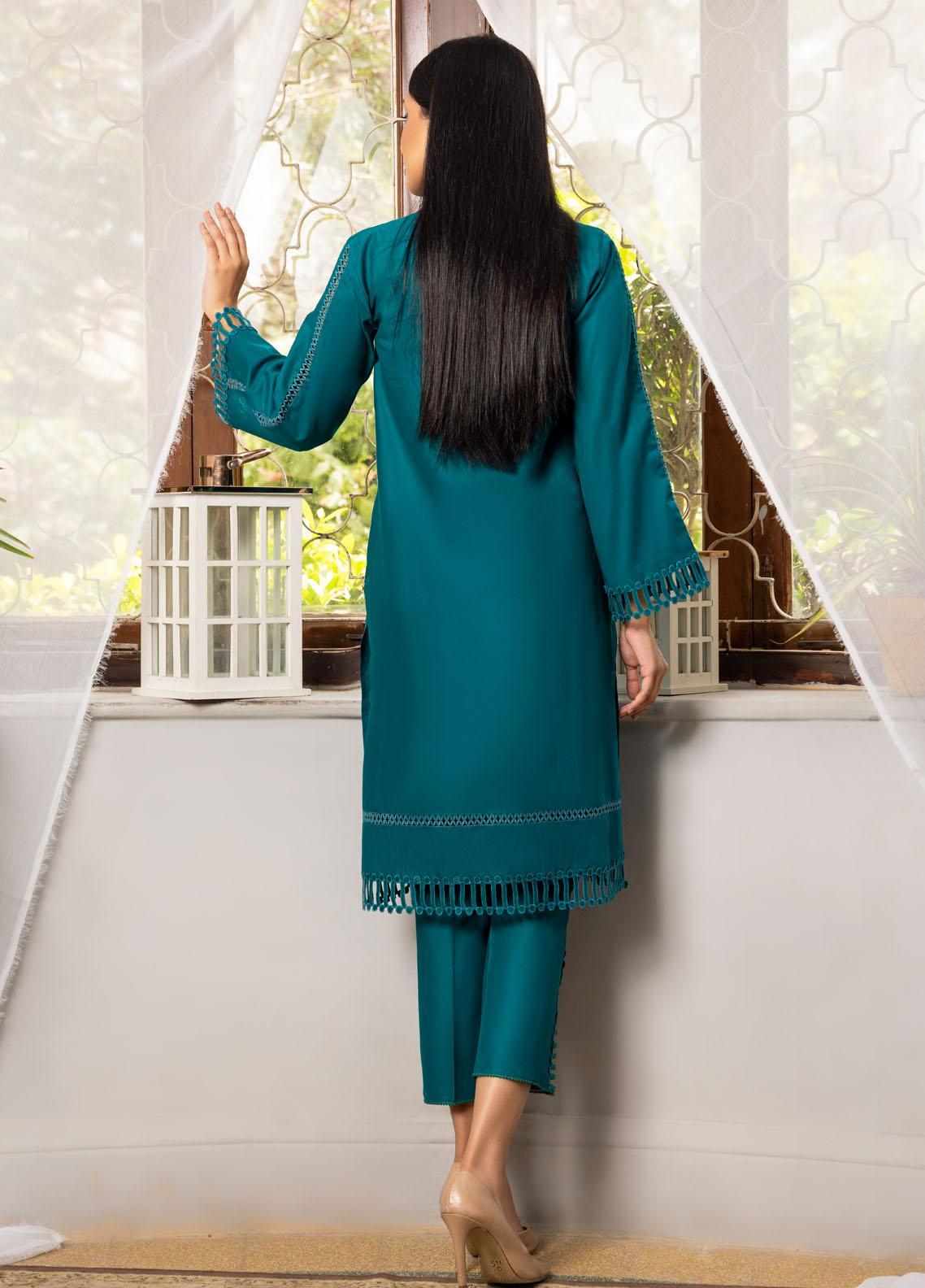 100 percent cotton straight line shirt with placement of same color laces to give an elegant look for daily wear. Paired with trousers.