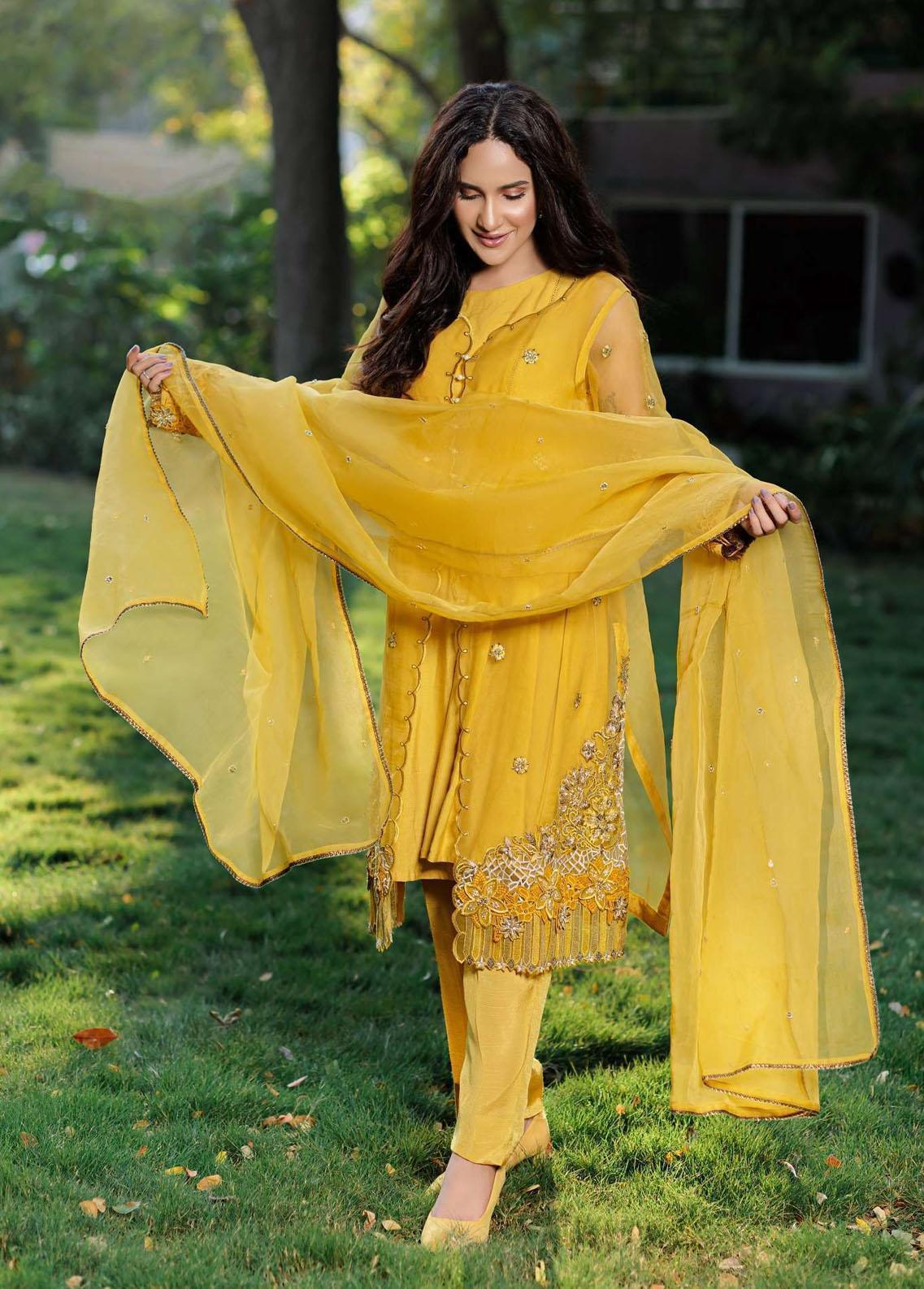 this festive coat with 3D lace with handtouched and gotta work in the border of daman sleeves.
