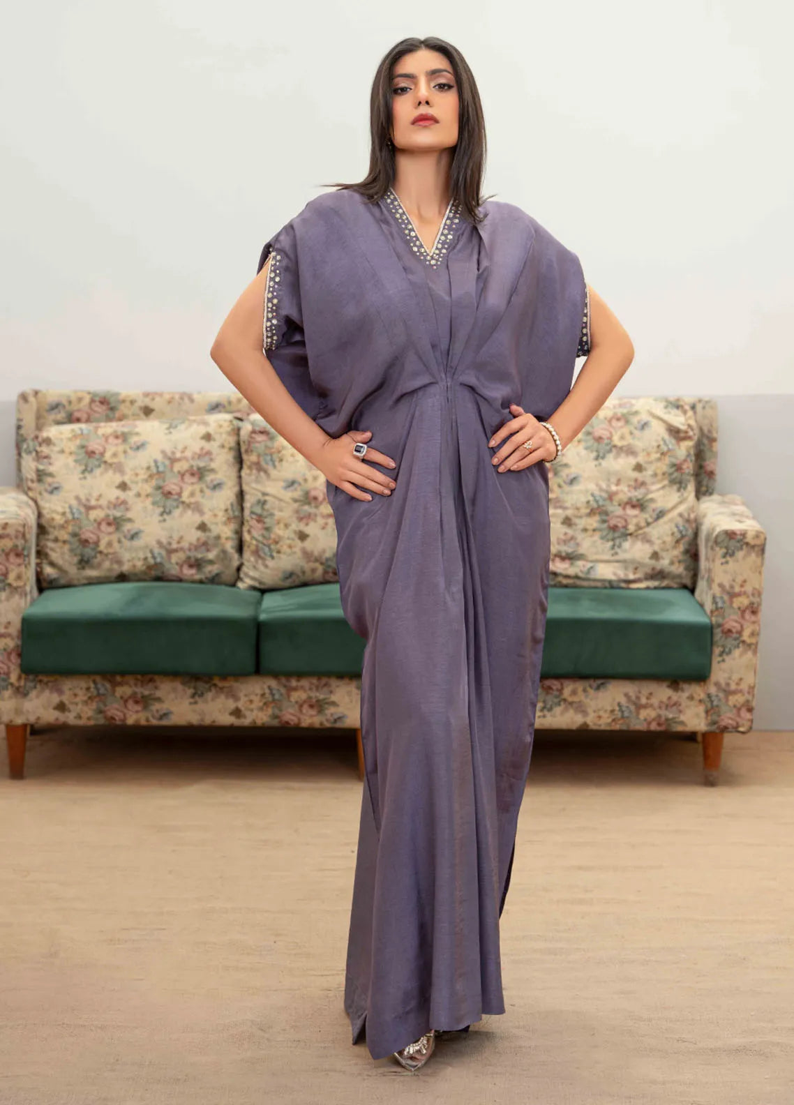 Embroidered Pret Raw Silk Kaftan
