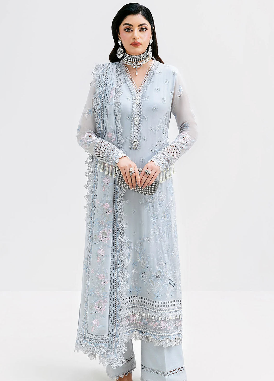 Embroidered organza border for front & back