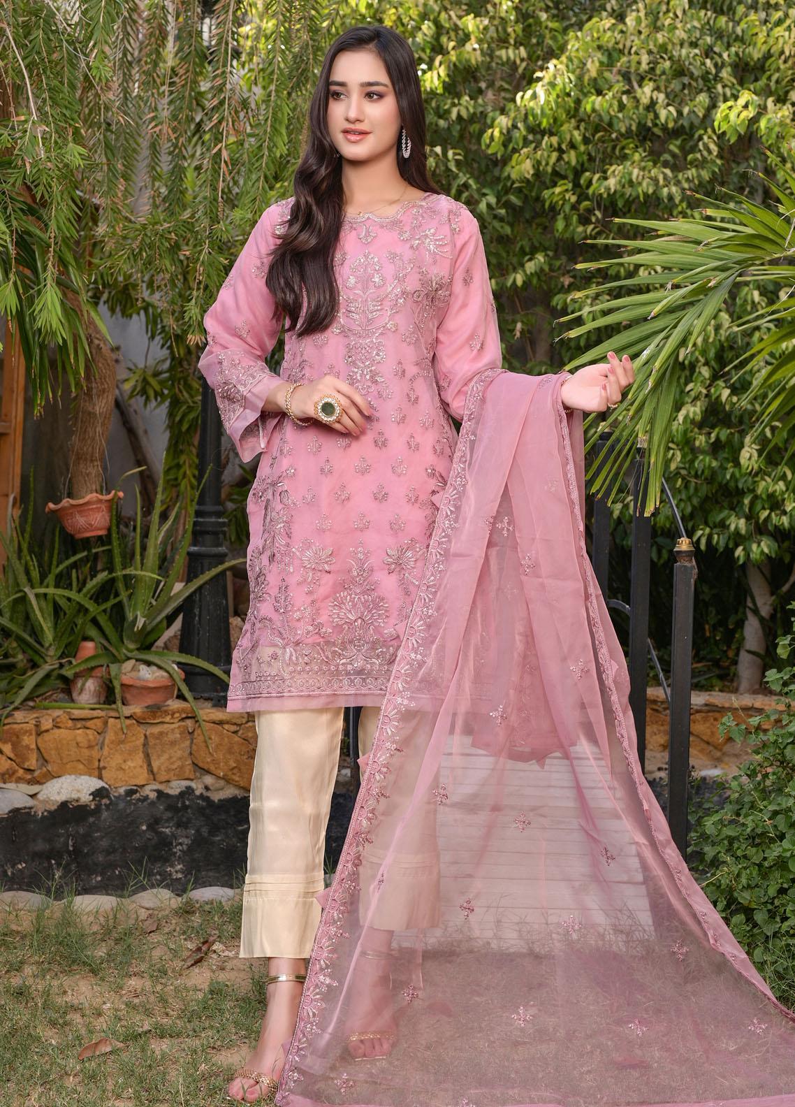 Style : 3 Pc Stitched Embroidered Organza (Shirt+Trouser+Dupatta).