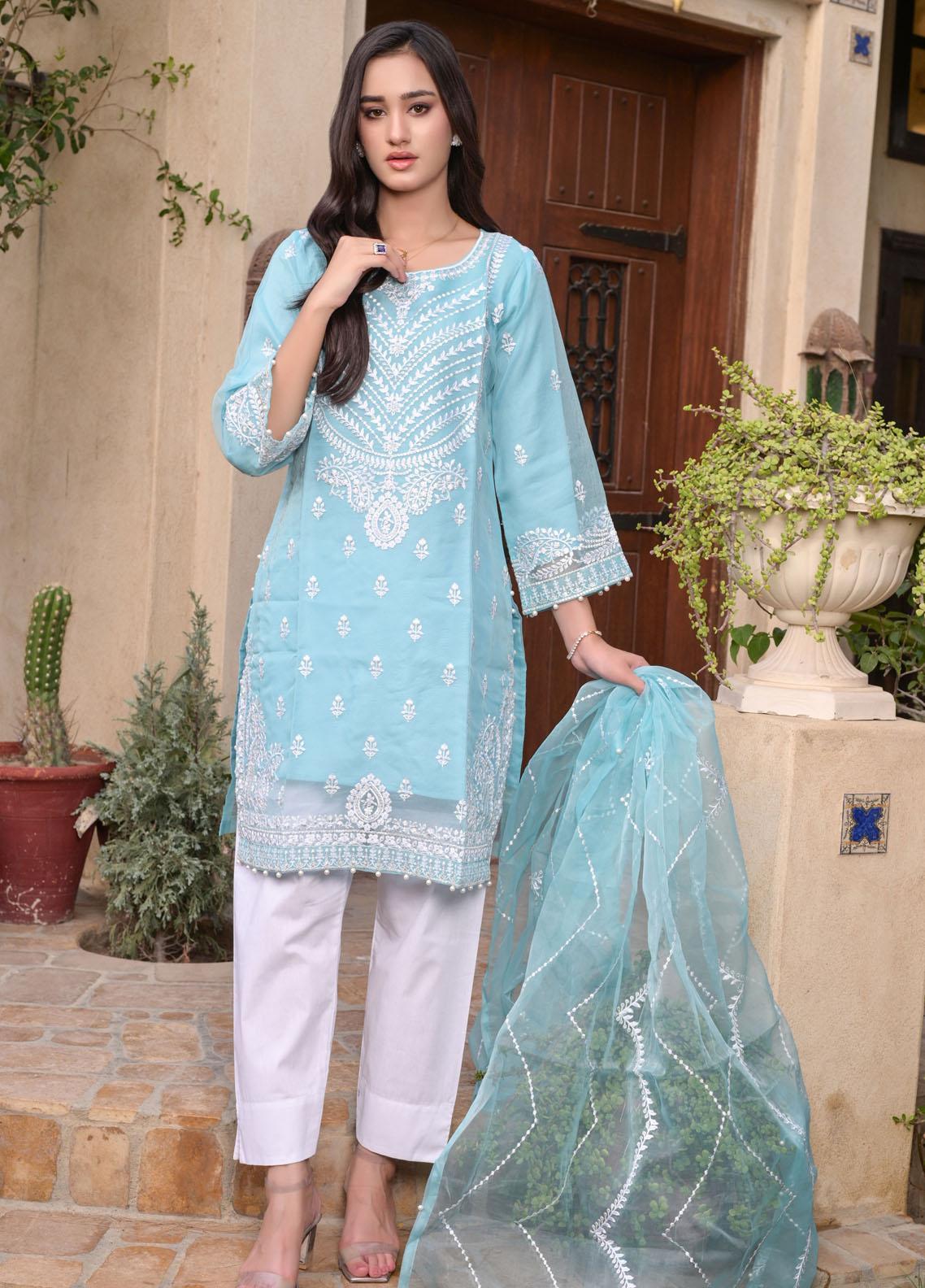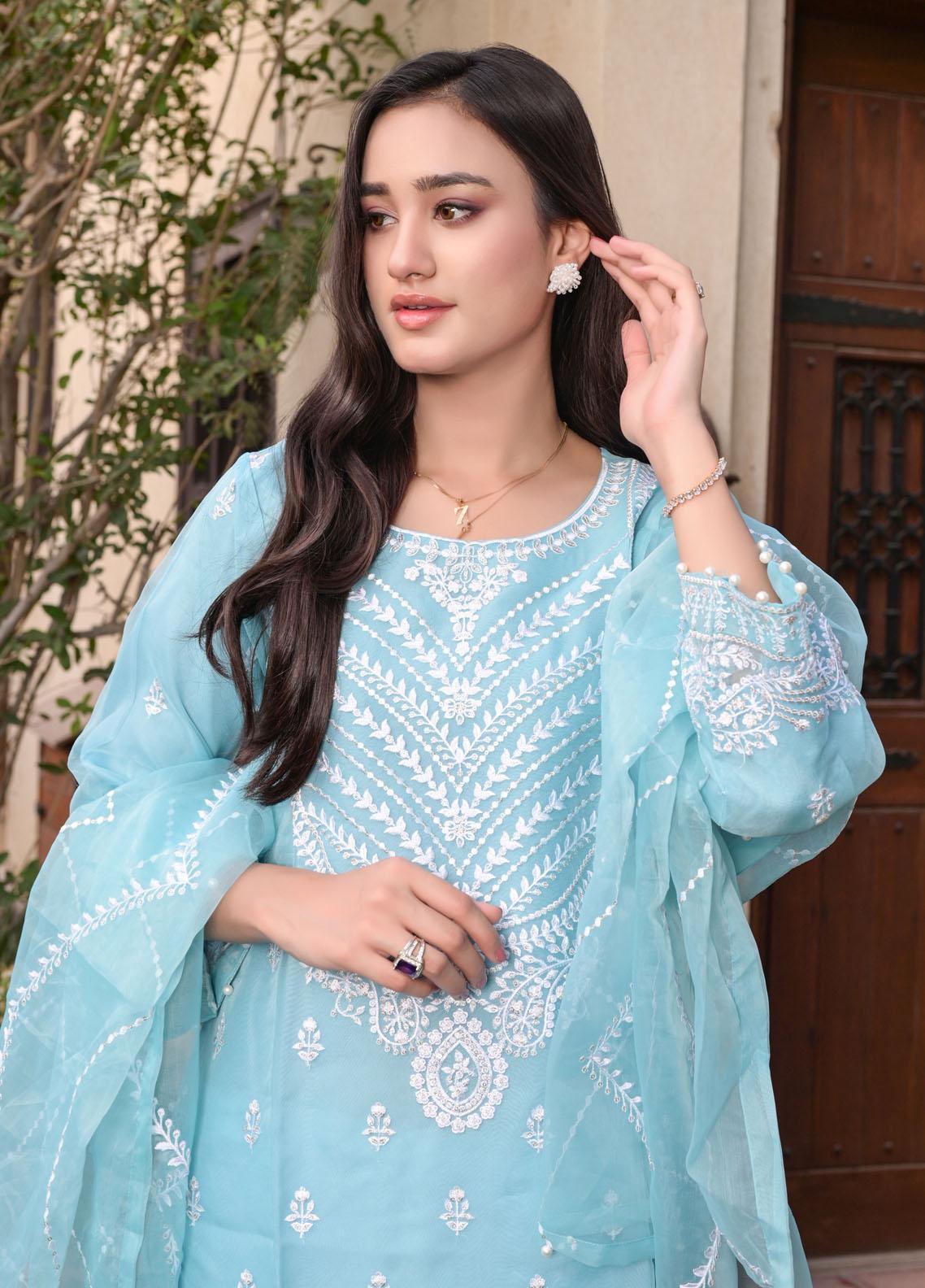 Style : 3 Pc Stitched Embroidered Organza (Shirt+Trouser+Dupatta).