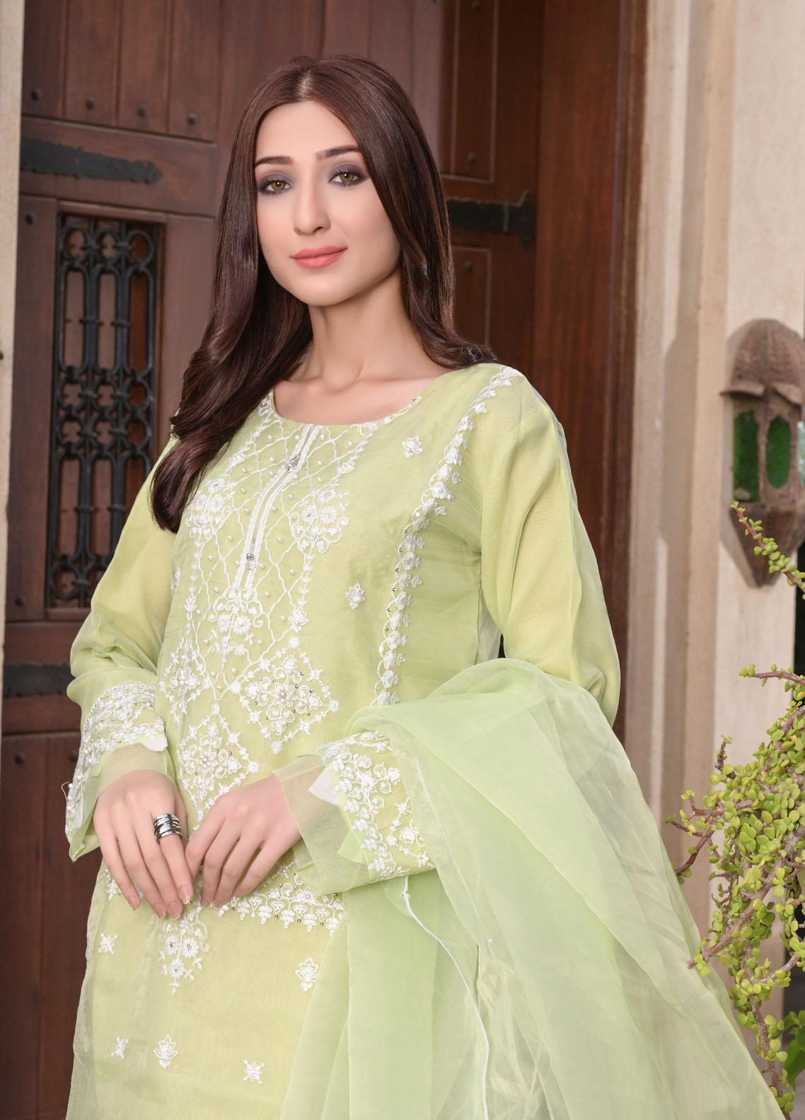 Style : 3 Pc Stitched Embroidered Organza (Shirt+Trouser+Dupatta).