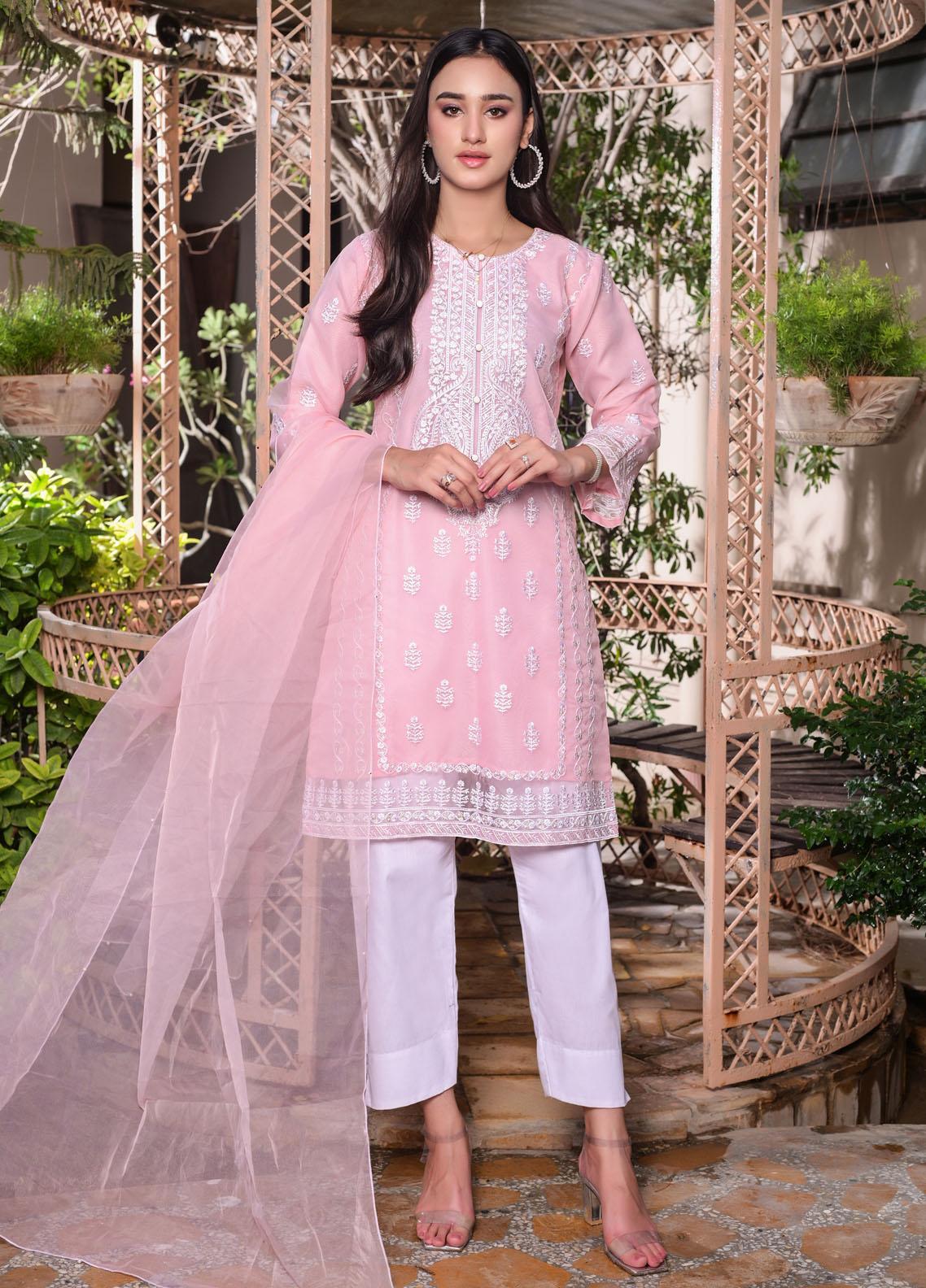 Style : 3 Pc Stitched Embroidered Organza (Shirt+Trouser+Dupatta).