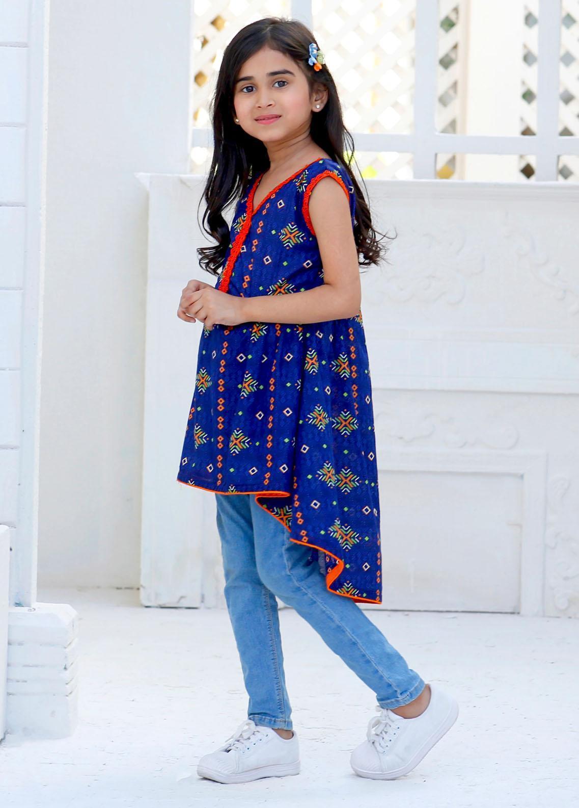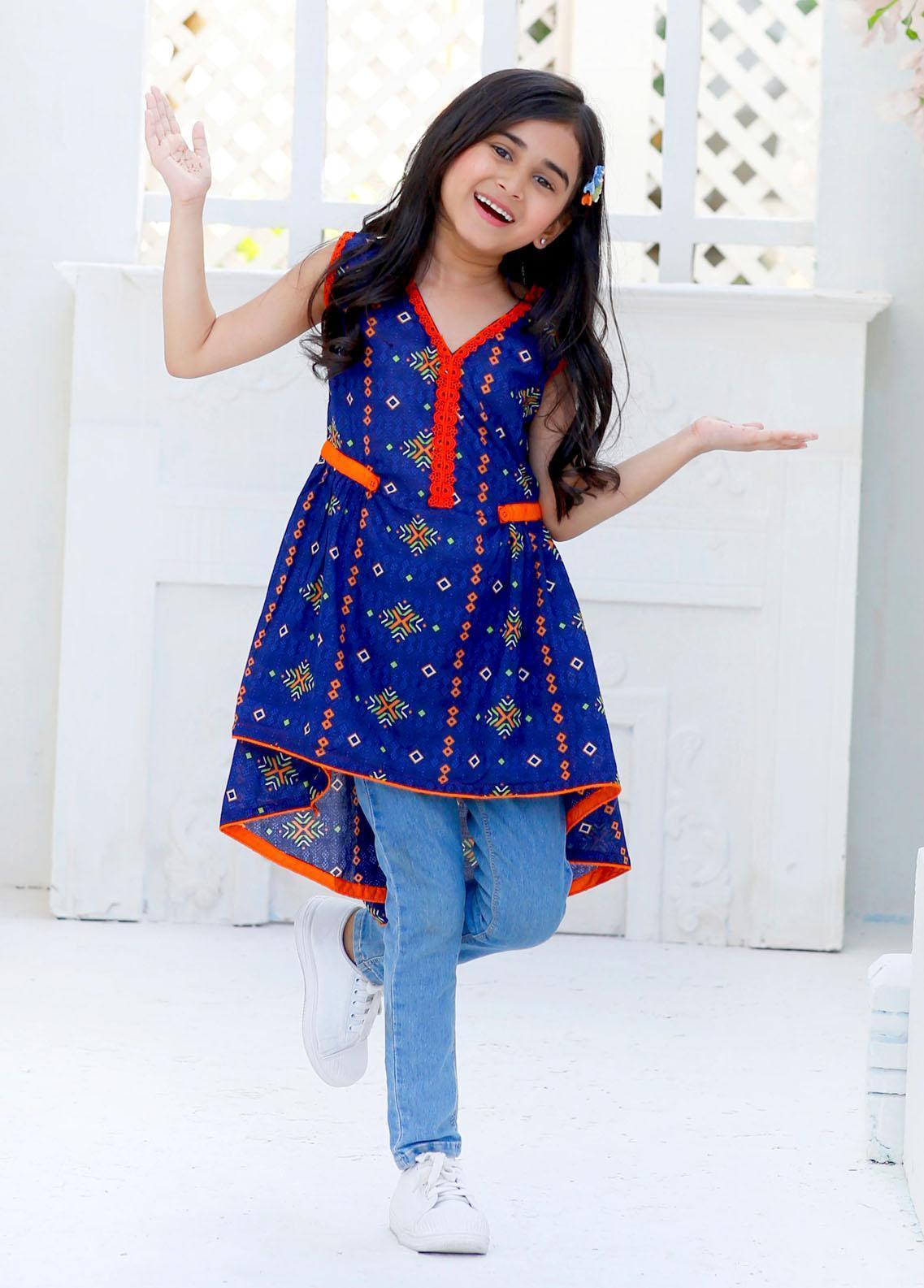 a colorful summer printed lawn kurti with a V neckline detail the perfect summer outfit for your princess.