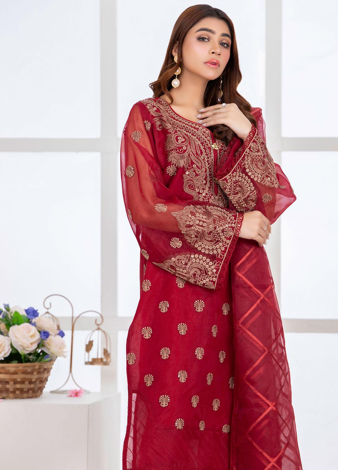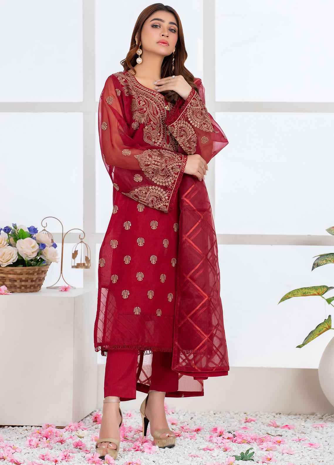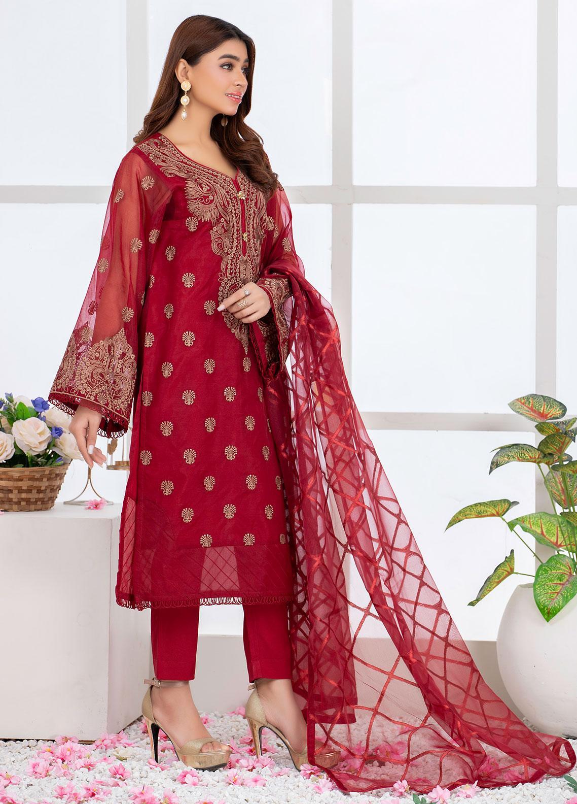 Mosaic Pret Luxury Organza 3 Piece Suit MS21S 02 MAROON