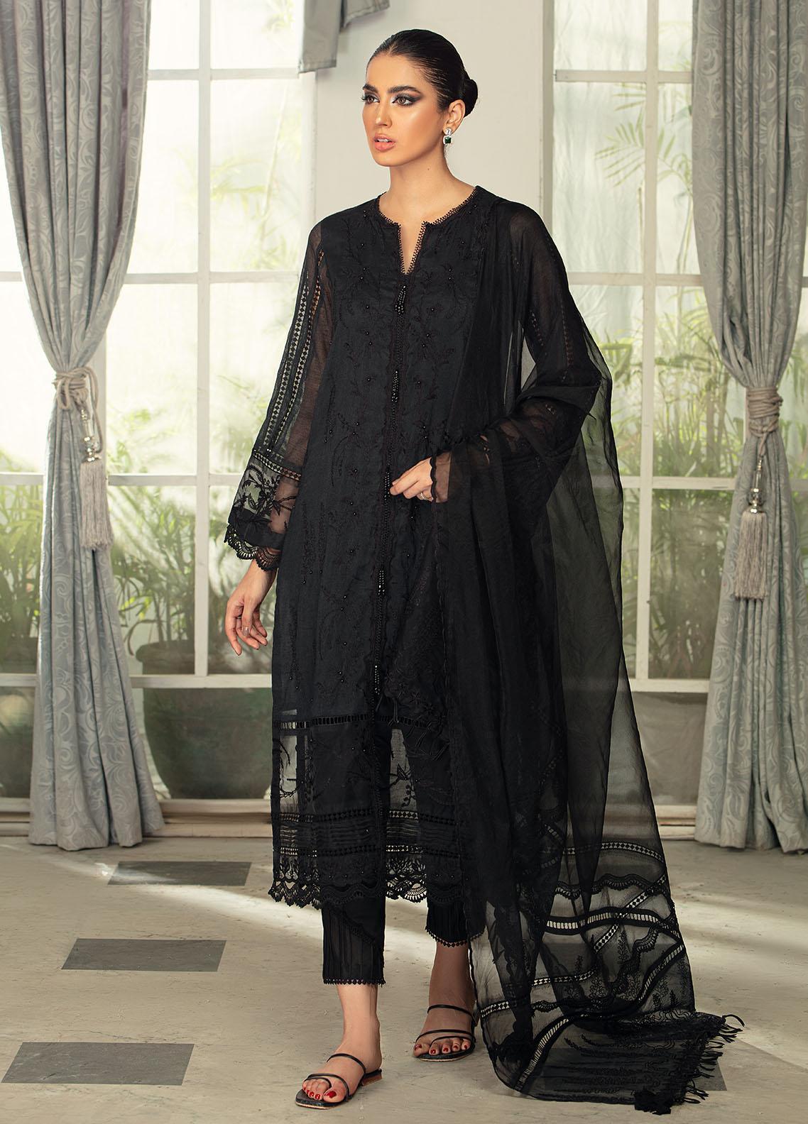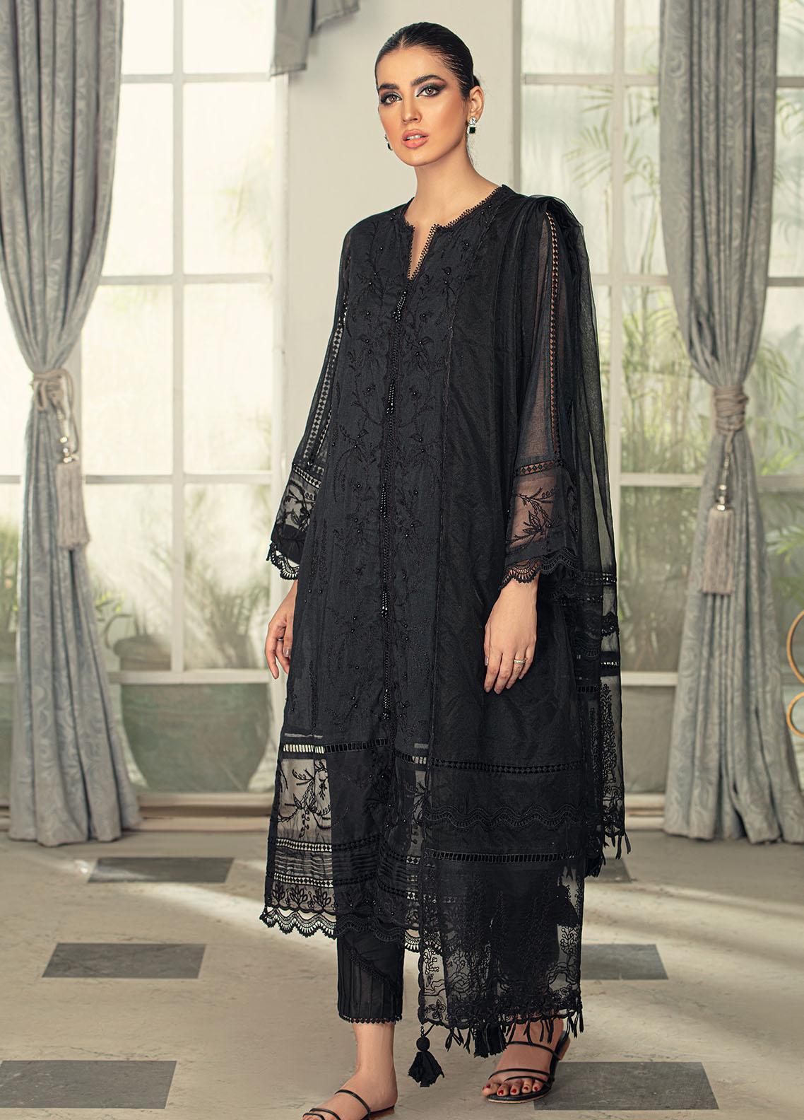 Intricately embroidered cotton net canvas is enhanced with lace trimmings and light borders to create a subtle yet elegant look.