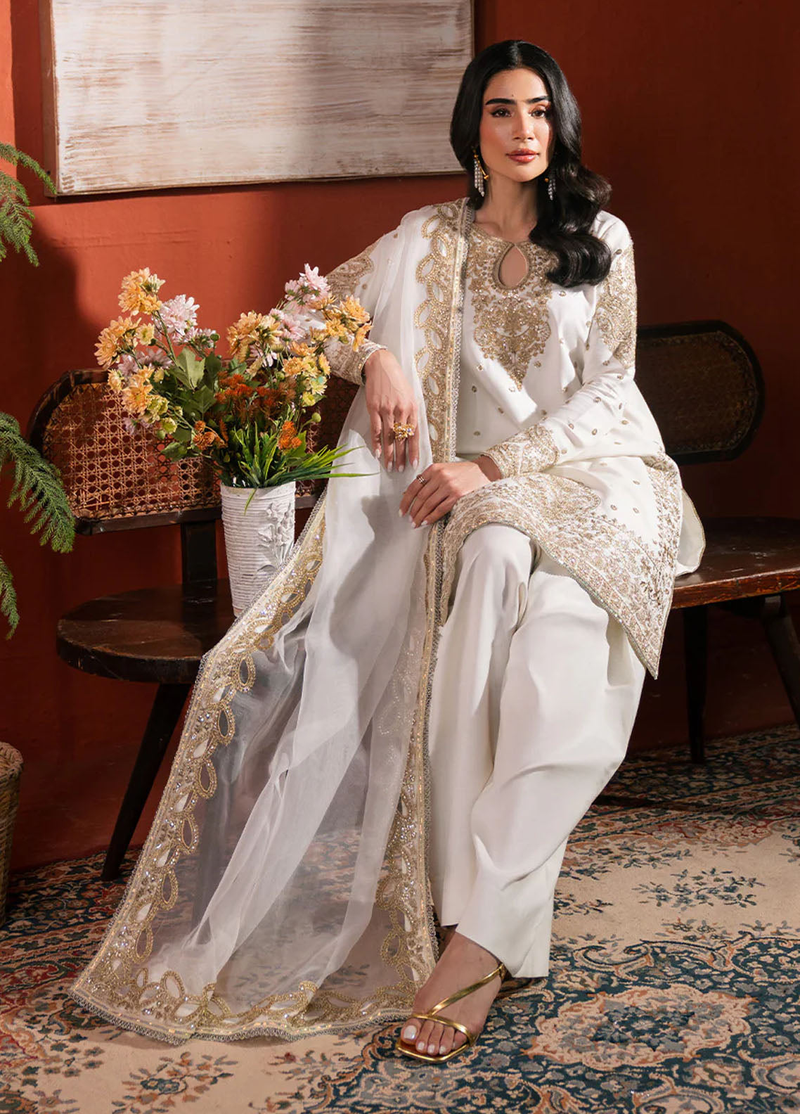Embroidered Pret Raw Silk 3 Piece Suit